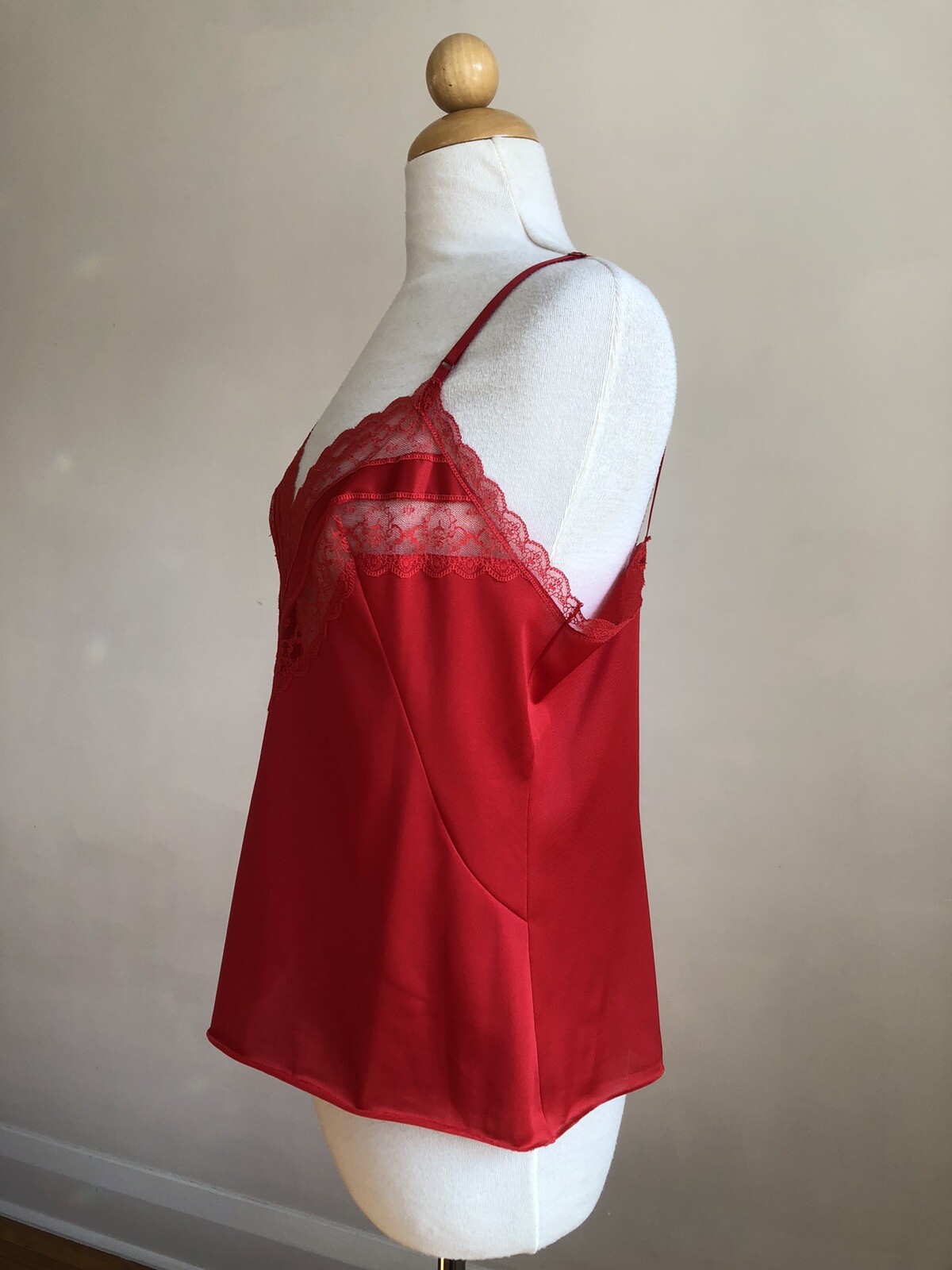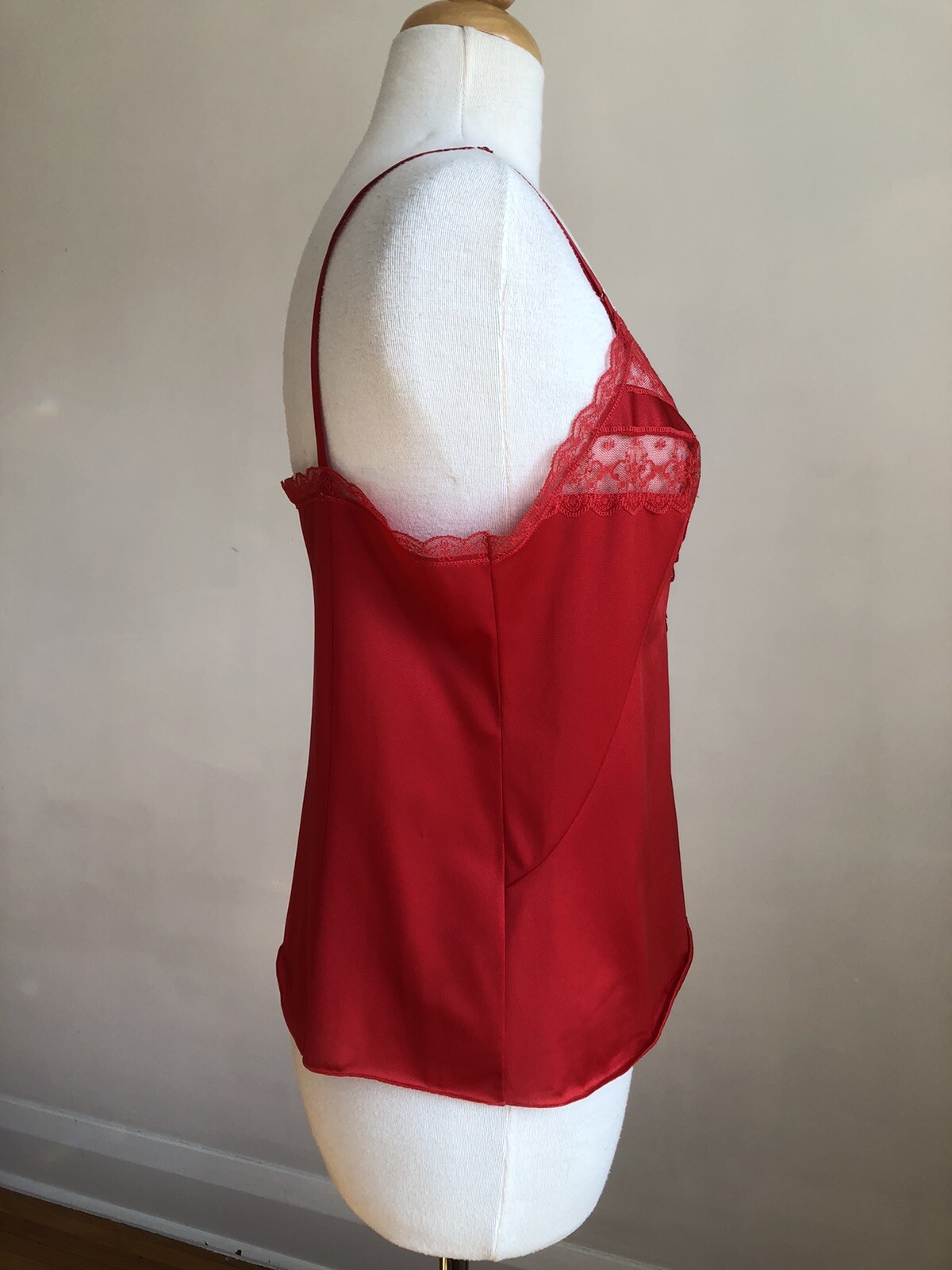 GORGEOUS VTG VANITY FAIR Red Nylon Lace Camisole Lingerie Top SZ 36