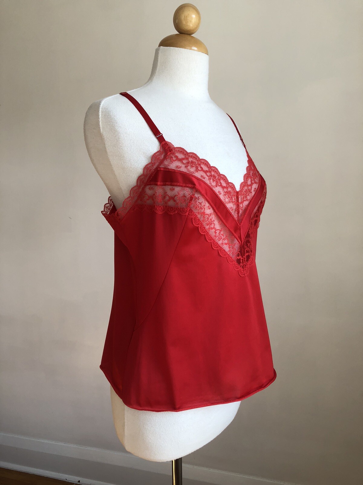 как выглядит GORGEOUS VTG VANITY FAIR Red Nylon Lace Camisole Lingerie Top SZ 36 фото