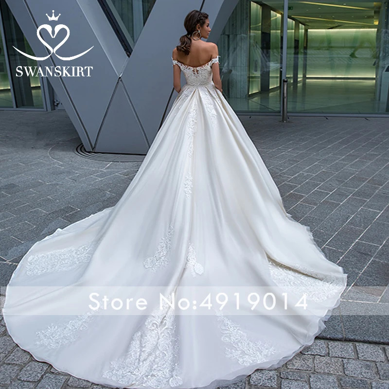 как выглядит Off Shoulder WeddingDress Appliques Sleeveless Beaded A-Line Princess Bride Gown фото