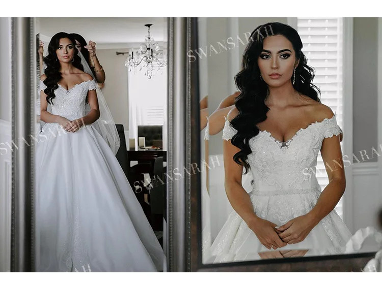 Off Shoulder WeddingDress Appliques Sleeveless Beaded A-Line Princess Bride Gown