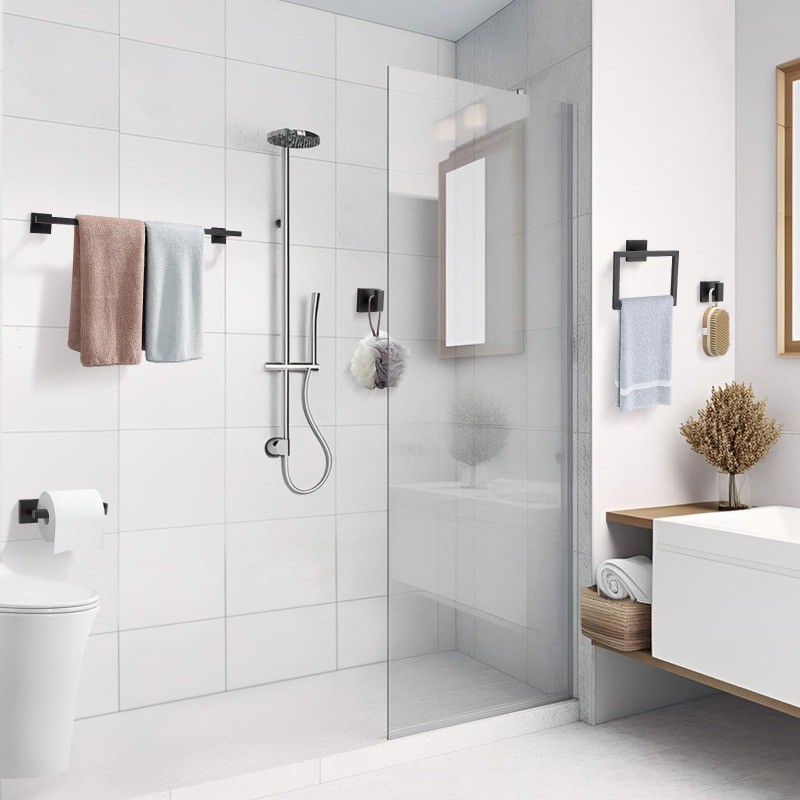 как выглядит TQKAG 10-Pc Matte Black SUS304 Set: Towel Bar, Ring, Paper Holder, Hooks фото