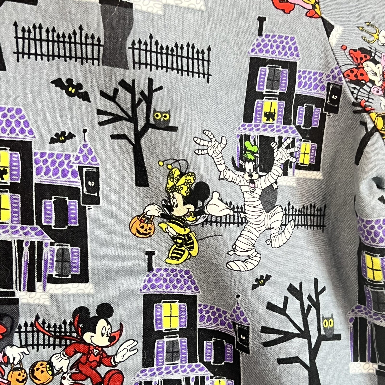 Disney Scrub Top Shirt Women's Small Gray Halloween Mickey Mouse Short Sleeve