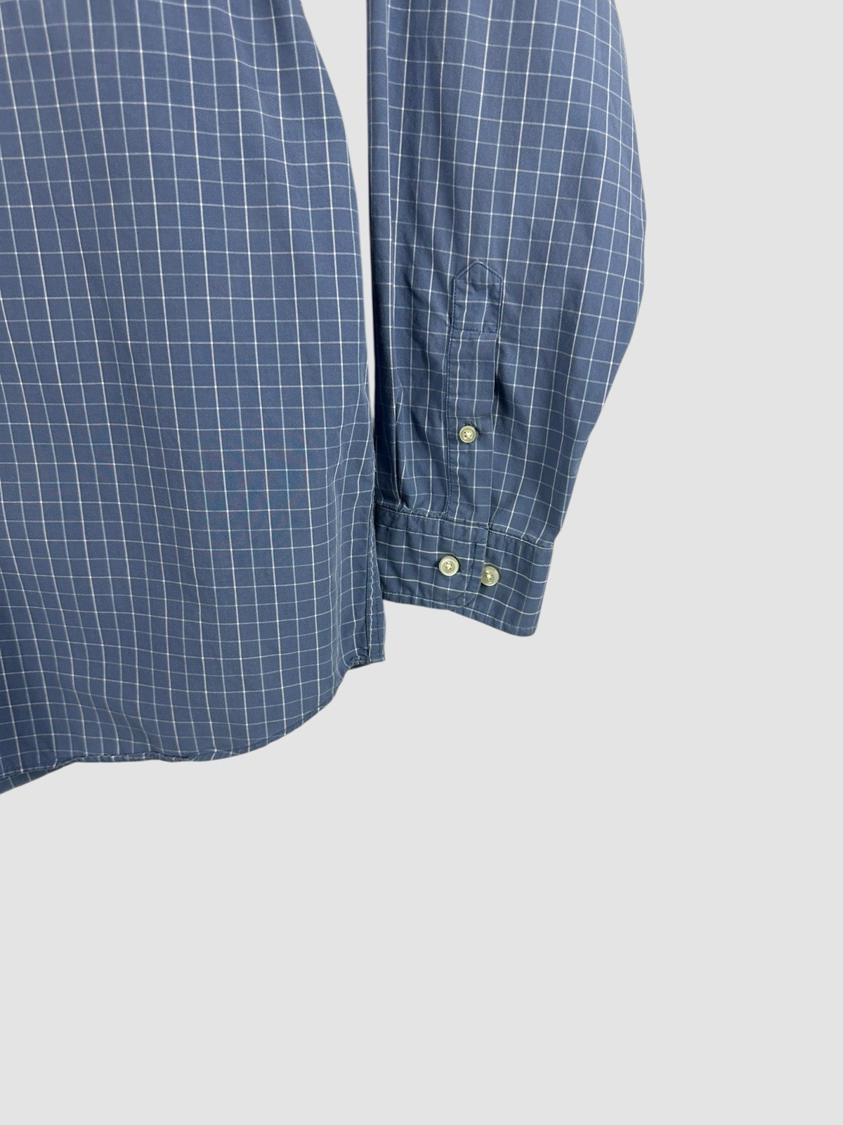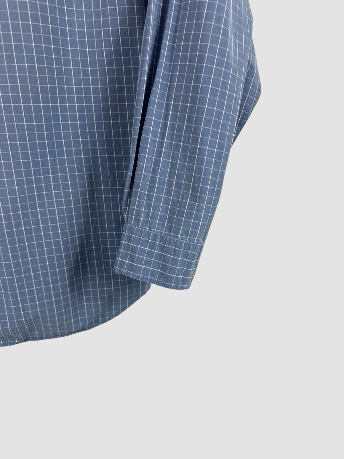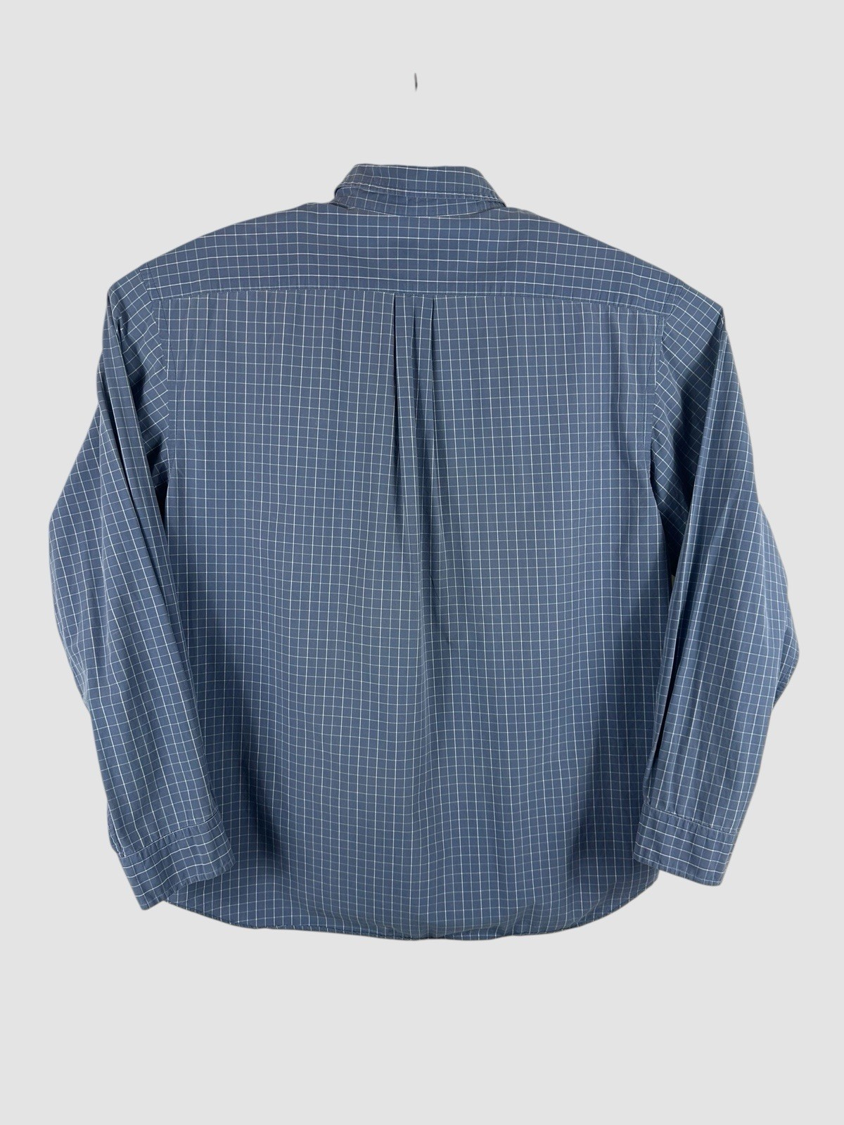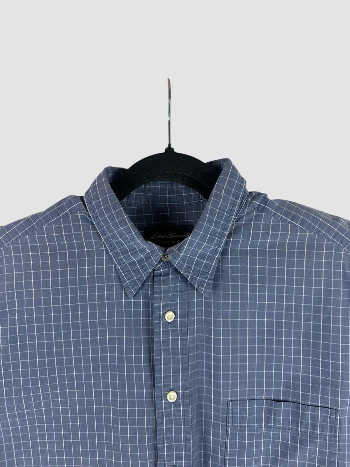 Eddie Bauer Mens XL Button Down Shirt Blue Check Cotton Long Sleeve