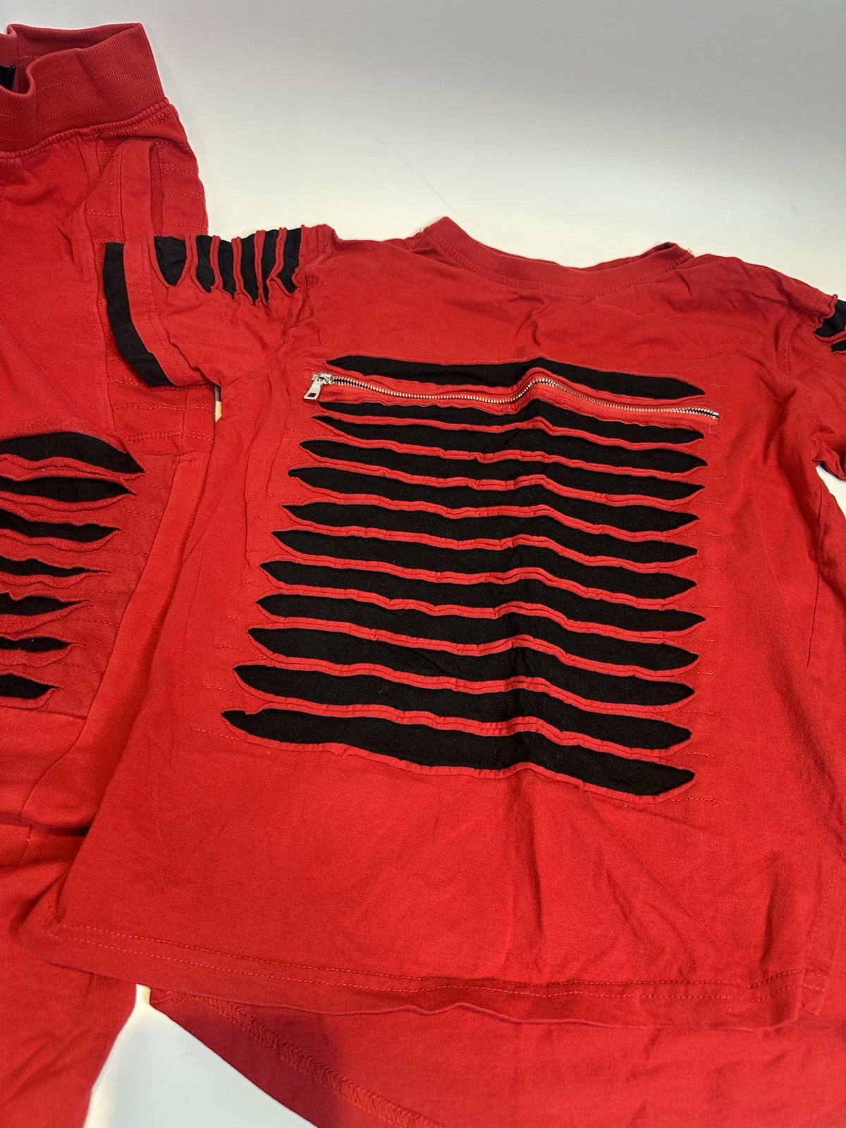 как выглядит Switch Remarkable Boys Red Black Cutout Cotton Shirt Pants Set M 10-12 фото