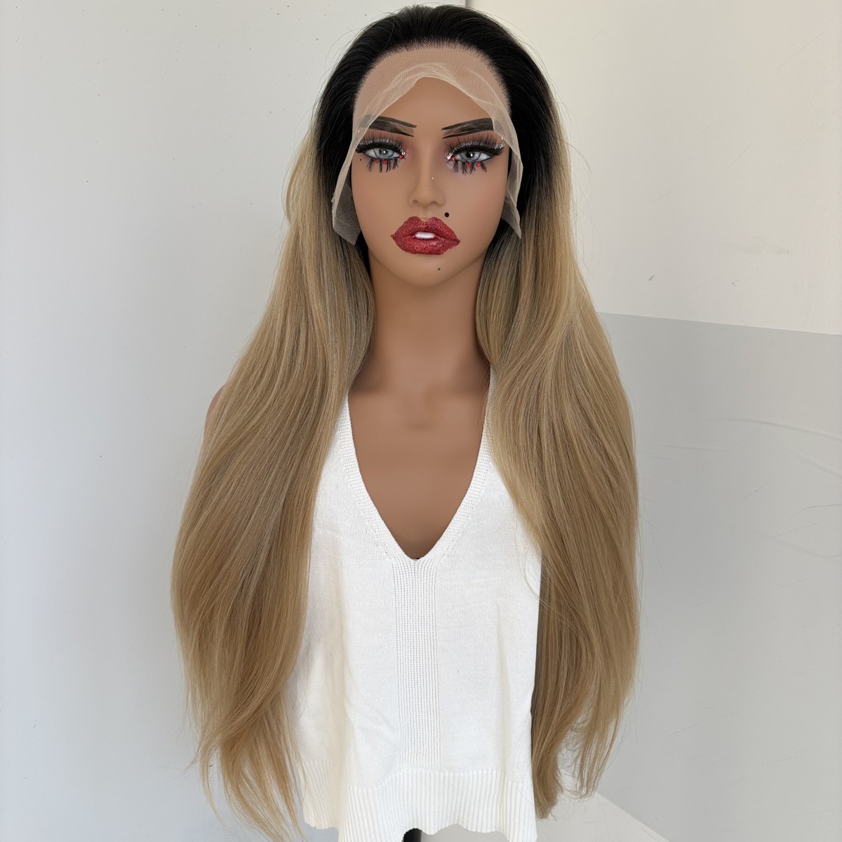 Long Straight Glue Less Lace Front Wig Heat Resistant Hair Highlight blonde