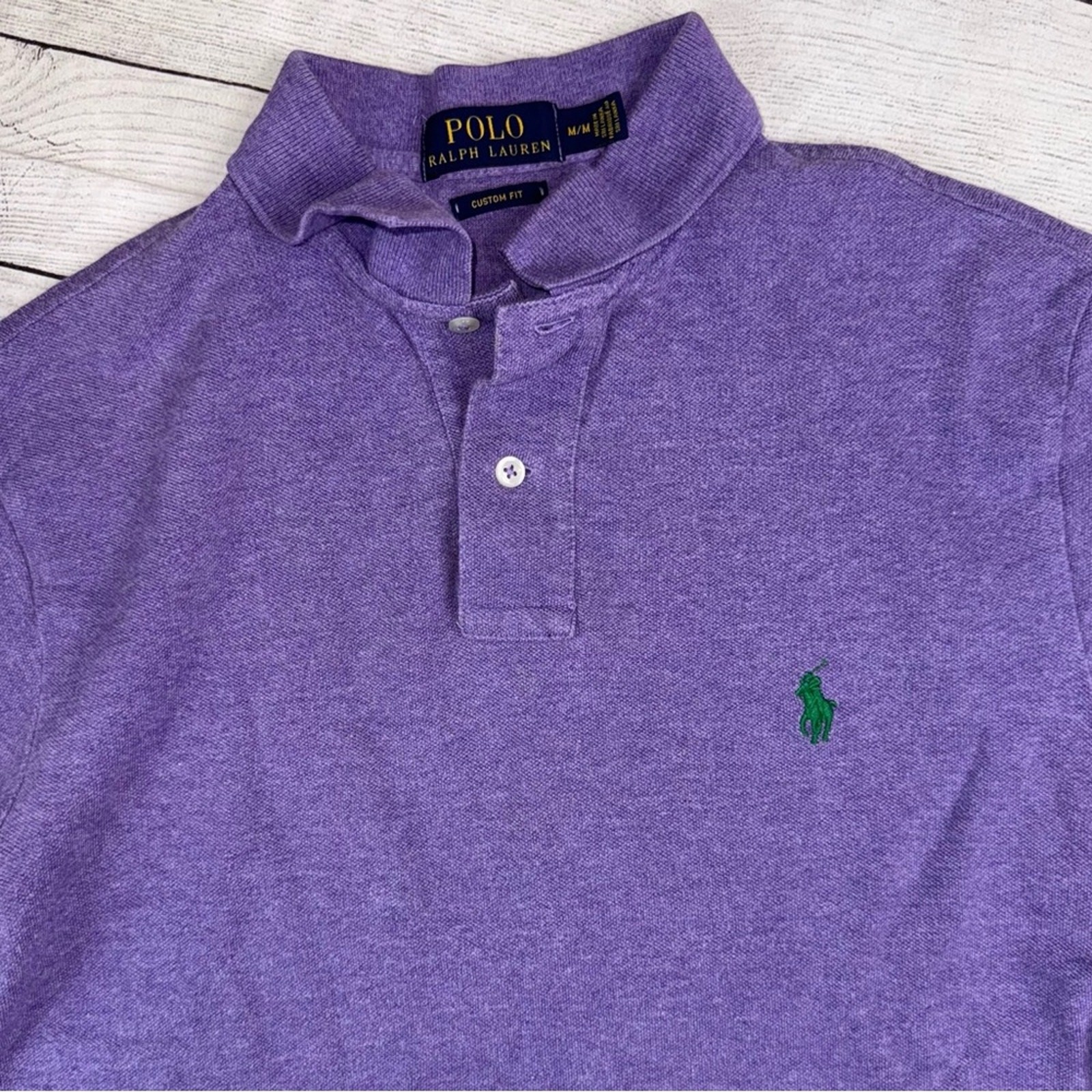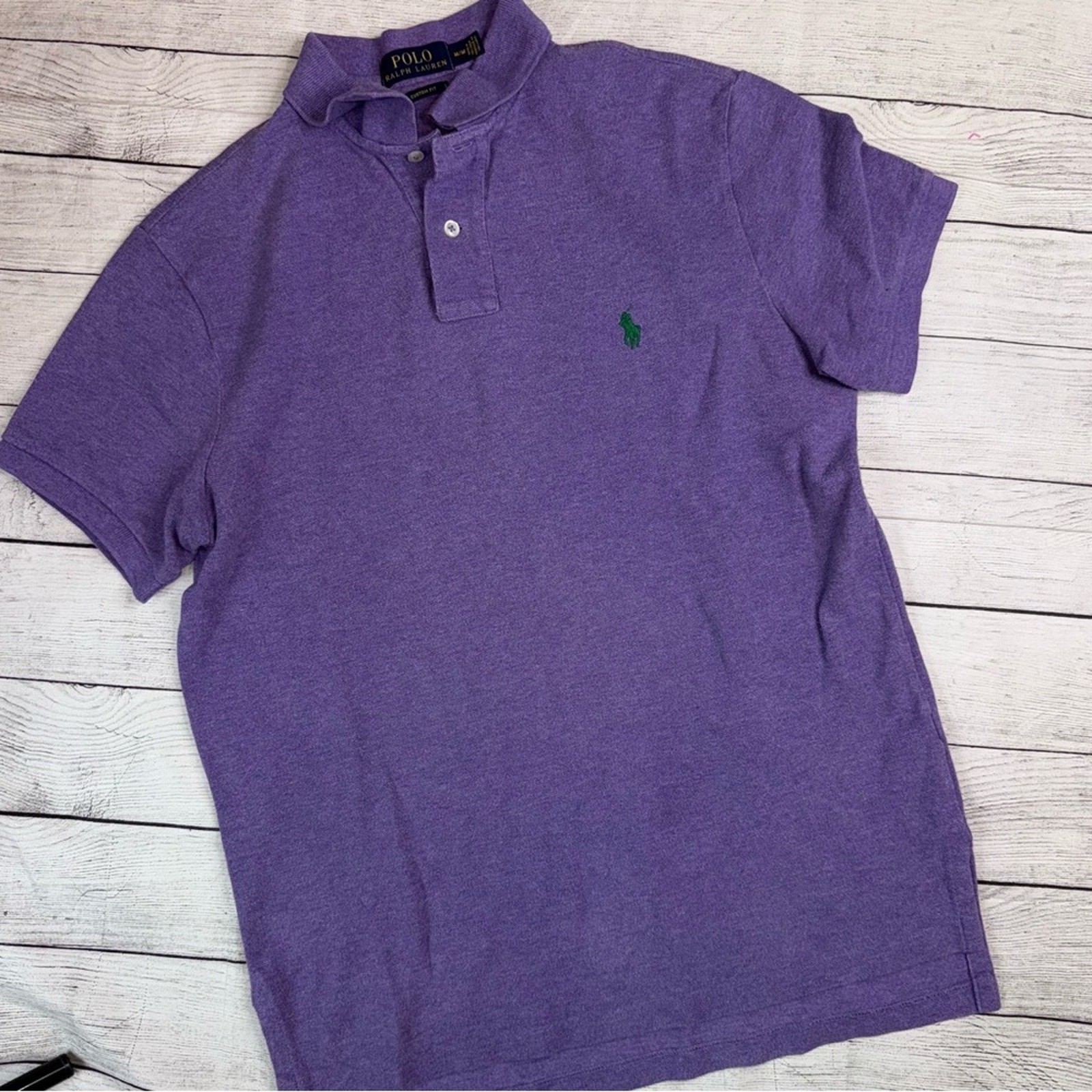 как выглядит Polo Ralph Lauren Mens Short Sleeve Polo Shirt Custom Fit Faded Purple Medium фото