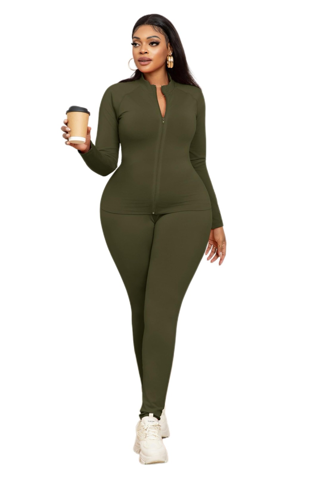 Workout Sets for Women - 2 Piece Yoga Outfits Long Sleeve Zip Up Jacket with ...