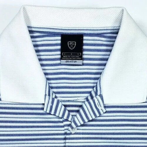 Nike Dry-Fit UV Mens L SS 3 Button Polo Breathable Blue White Striped Shirt