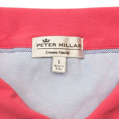 Peter Millar Crown Finish Mens L Pullover Short Sleeve Button Polo Salmon Pink