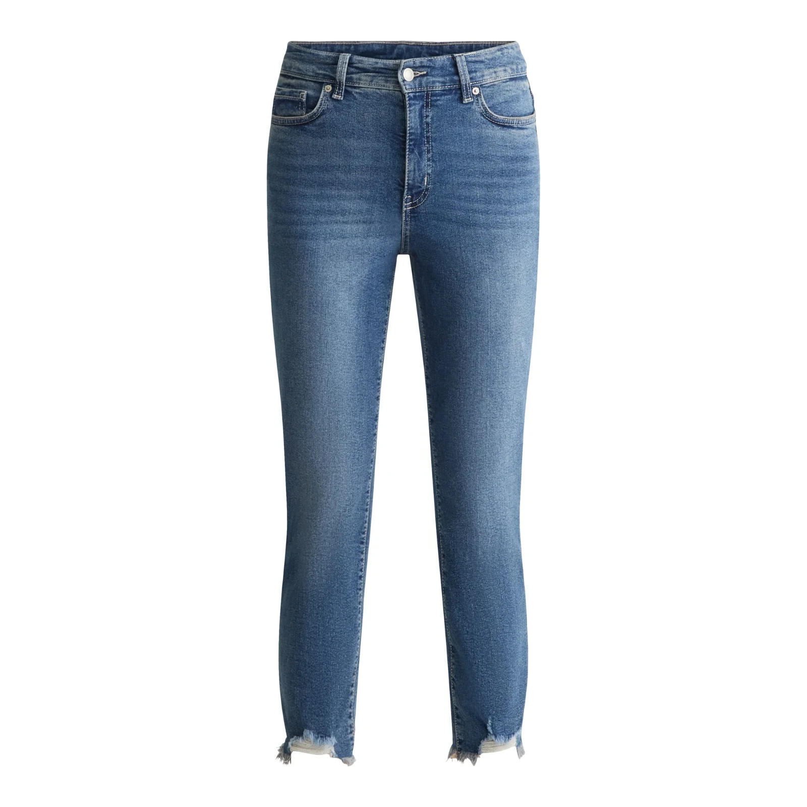 как выглядит TIME AND TRU - SIZE: 4 - High Rise Straight Leg Destructed Hem 26" Inseam Jeans фото