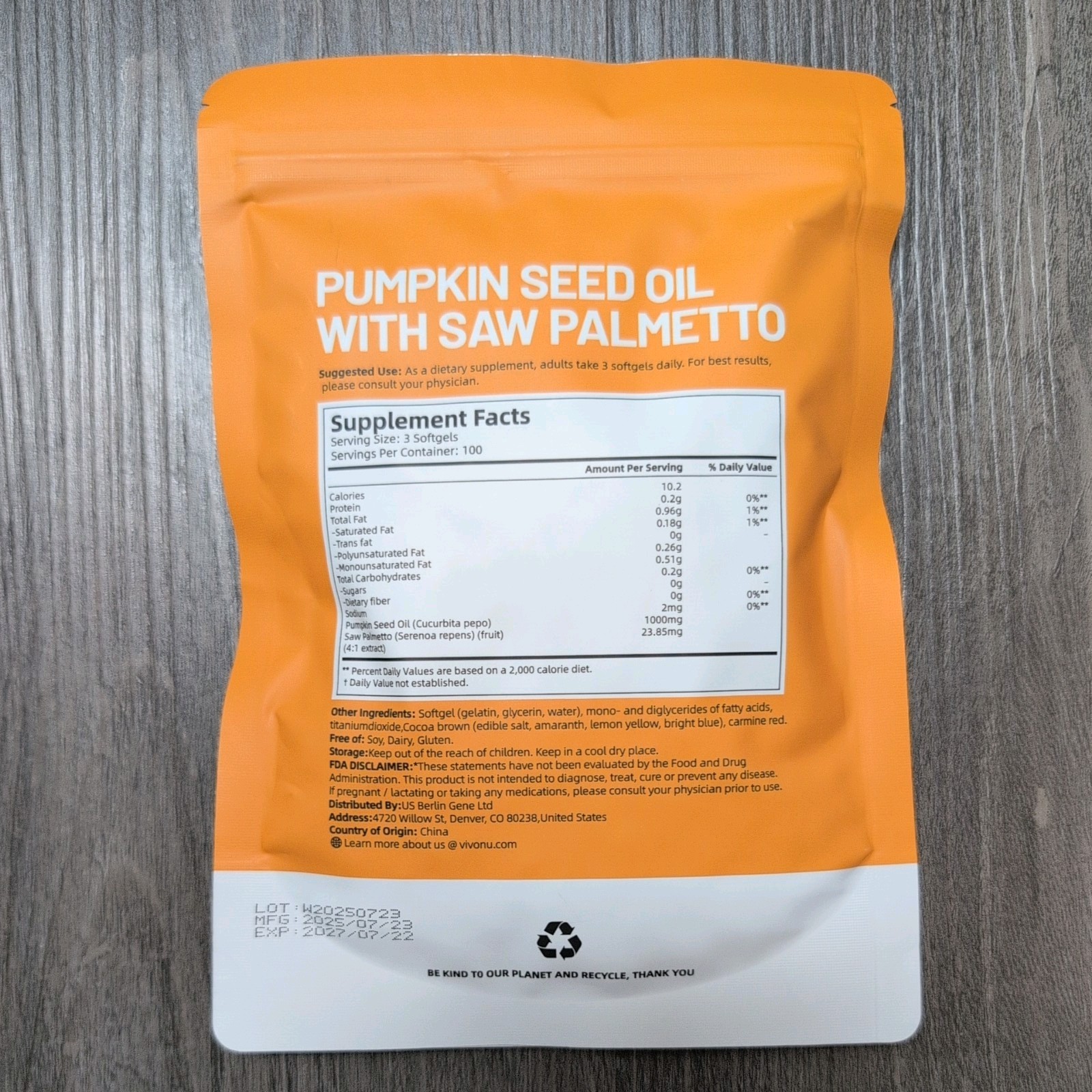 Ingredients: Pumpkin Seed Oil, Saw Palmetto
