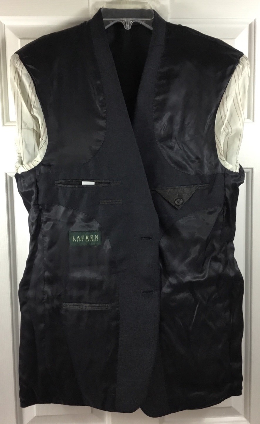 как выглядит Lauren Ralph Lauren Blazer Mens 40R Navy Plaid UltraFlex 100 Wool Sport Coat фото