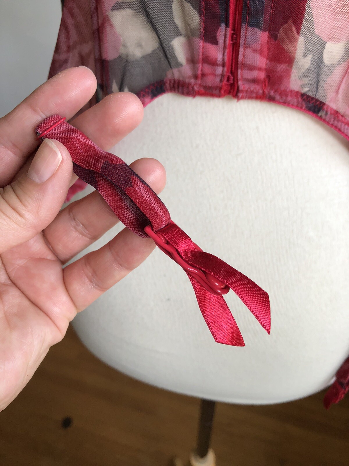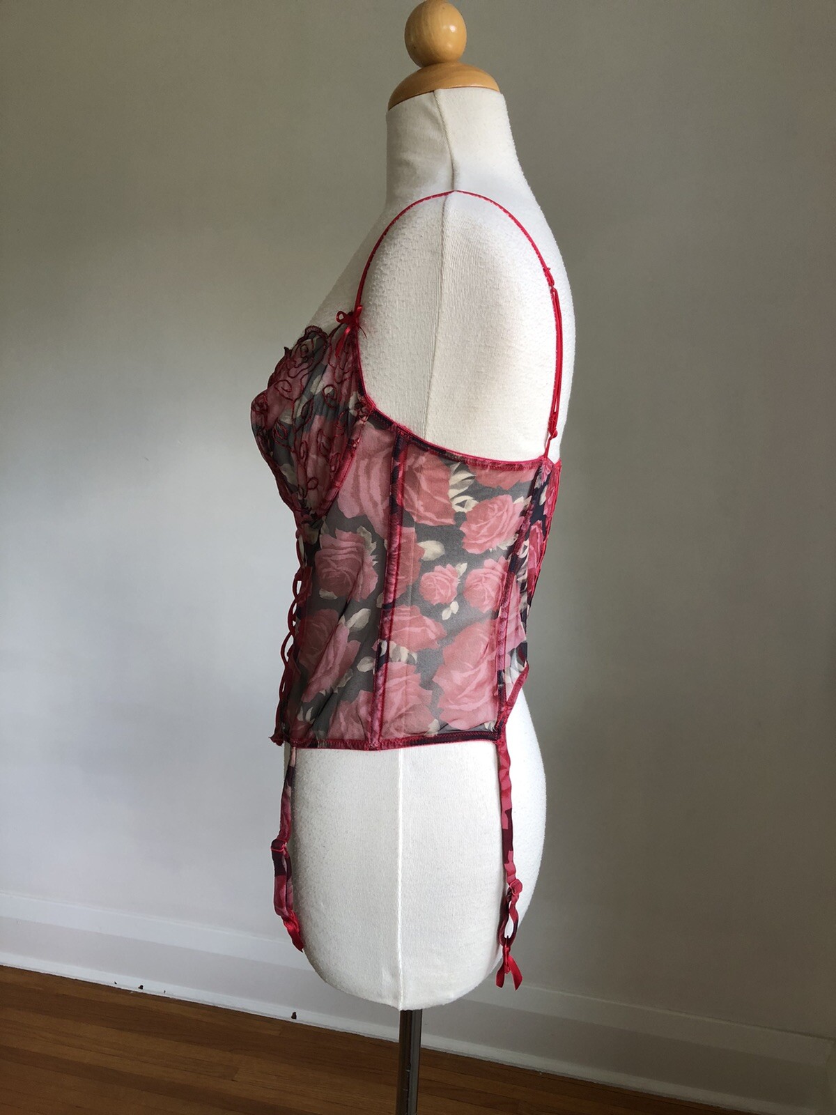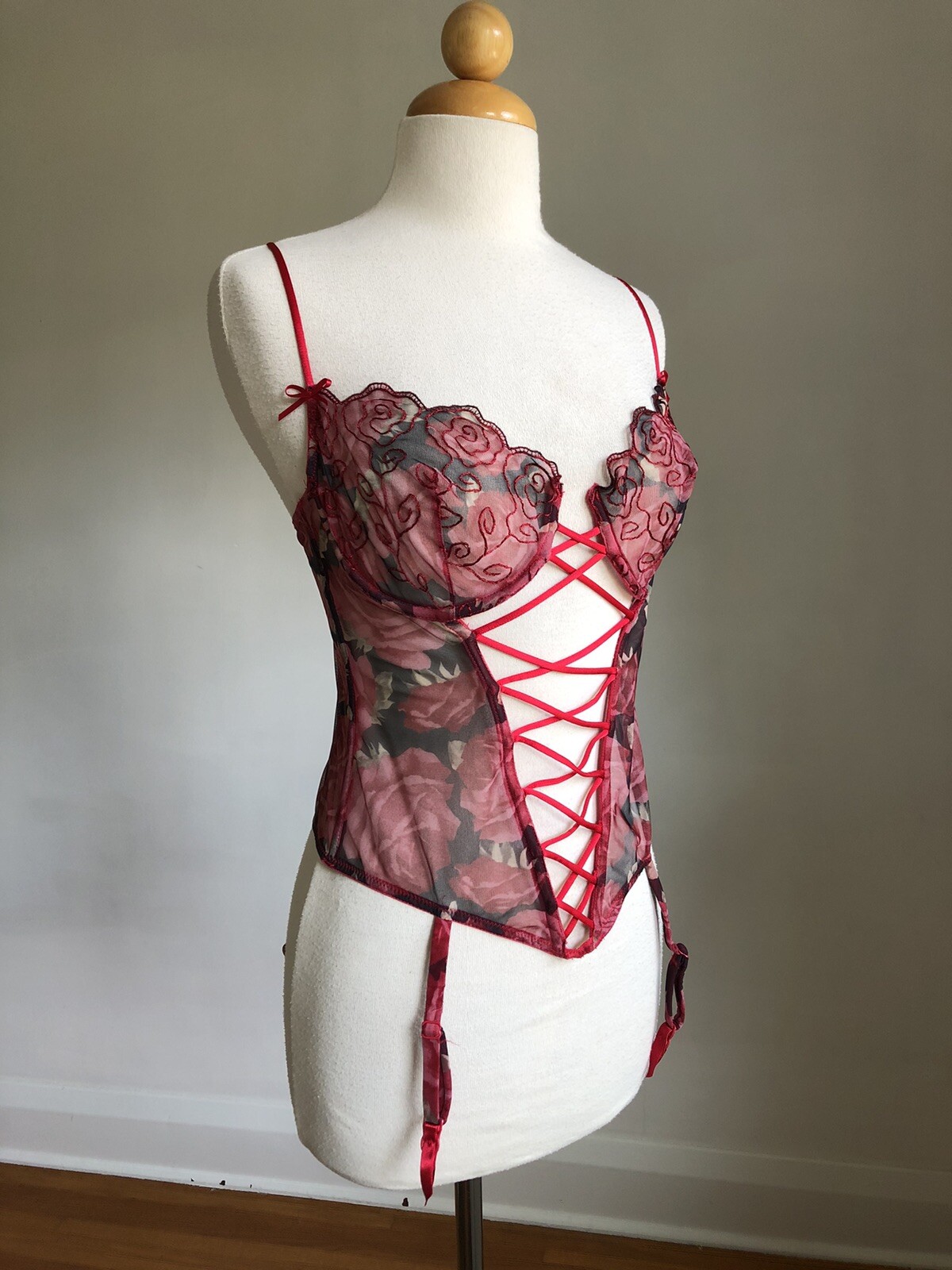 как выглядит STUNNING VTG VICTORIAS SECRET Red Roses Bustier Bra Garter Straps Lingerie 36C фото