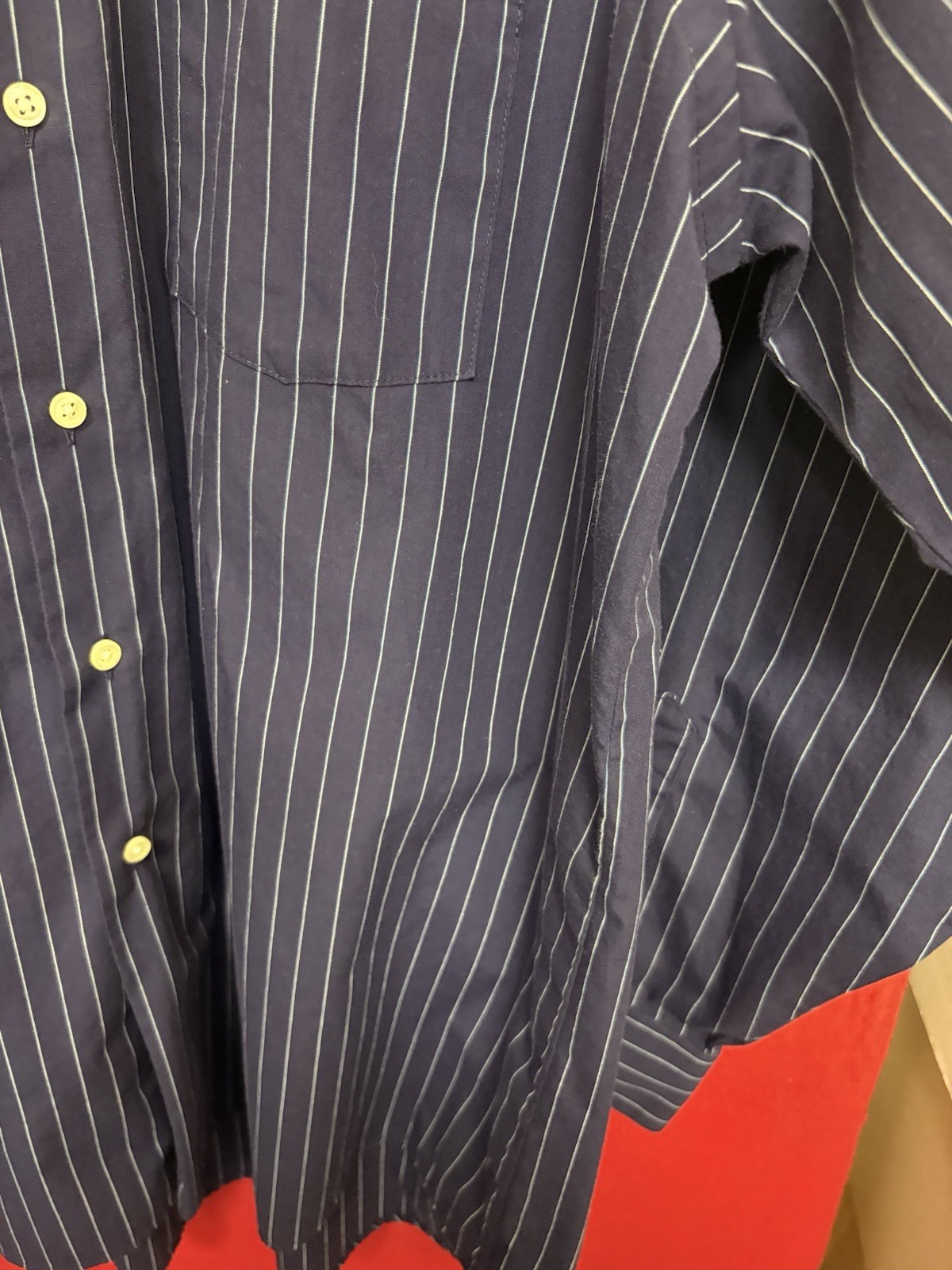 Men s Van Heusen Long Sleeve Striped Dress Shirt- 17-17 1/2 34-35 Navy Blue XL
