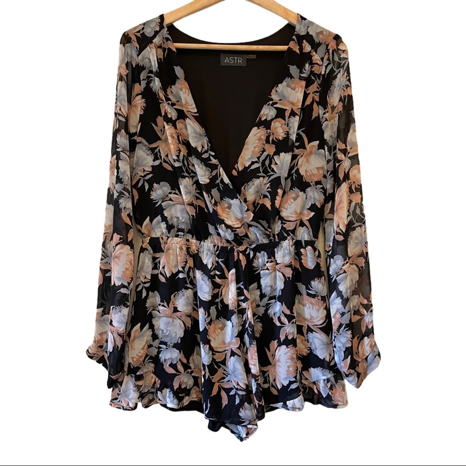 как выглядит ASTR The Label Black Floral Romper Medium Womans Spring Summer фото