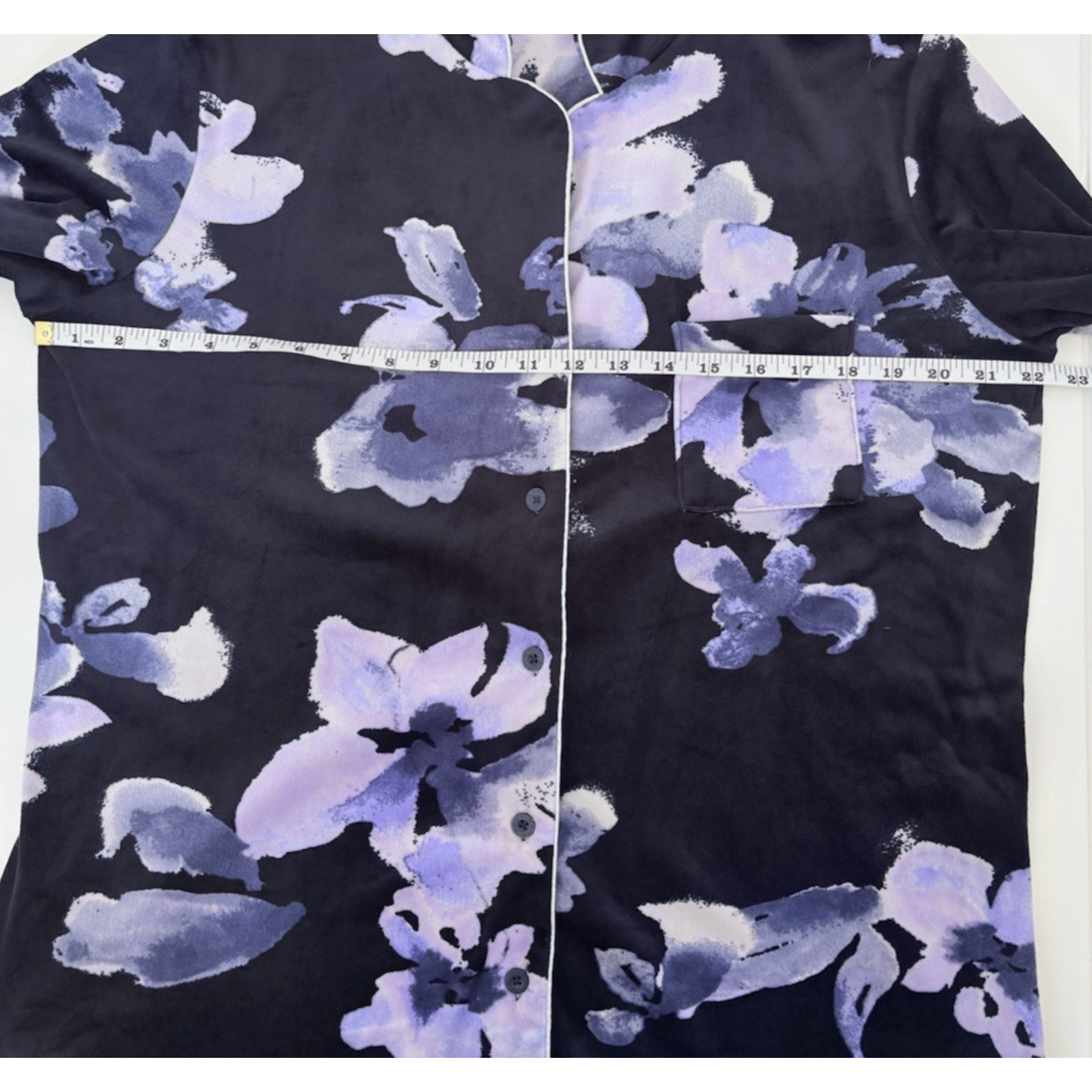 как выглядит Nicole Miller Floral Velvet Fleece Pajama Set 2-Piece Black Purple Sleepwear XL фото