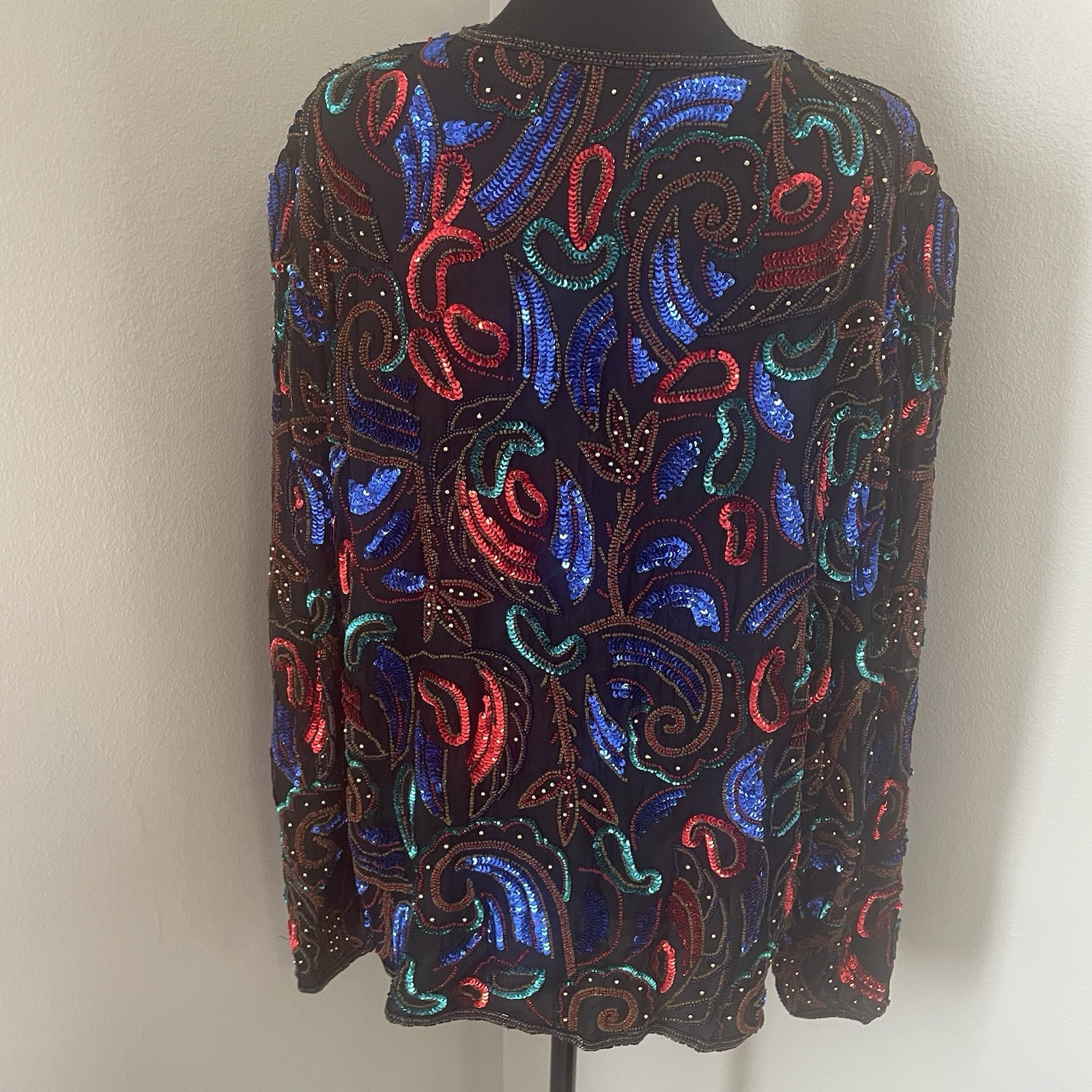 как выглядит VTG SCALA 100 Silk Evening Jacket Sz 1X Beaded Sequin Multicolor Paisley Glam фото
