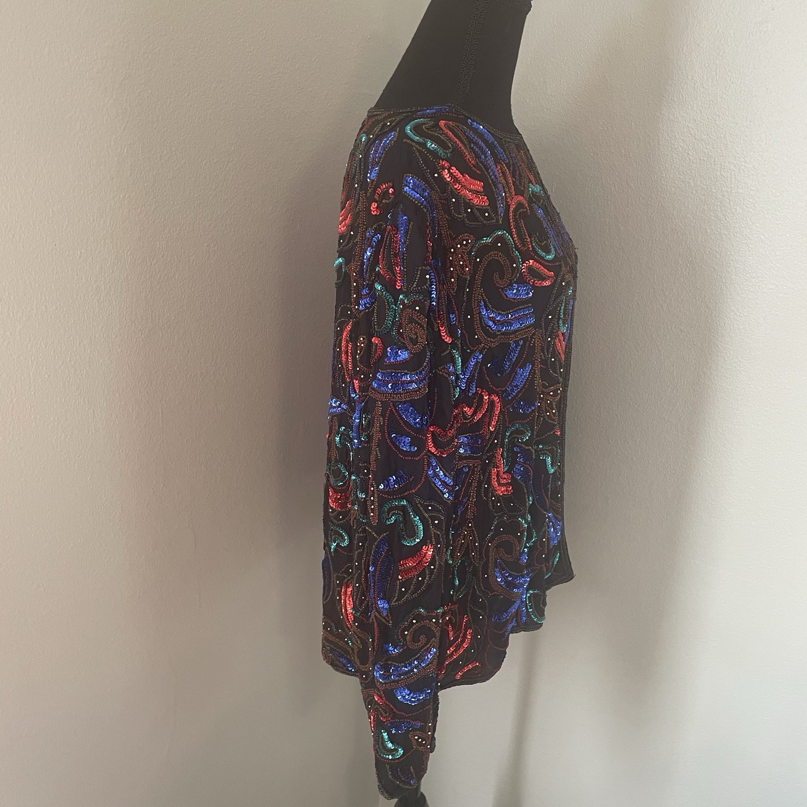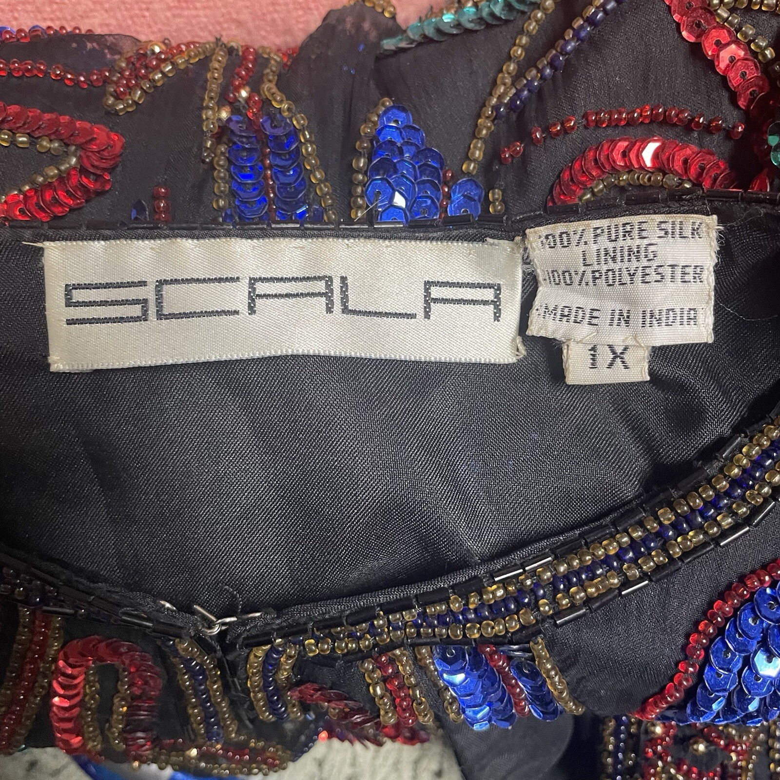 VTG SCALA 100 Silk Evening Jacket Sz 1X Beaded Sequin Multicolor Paisley Glam