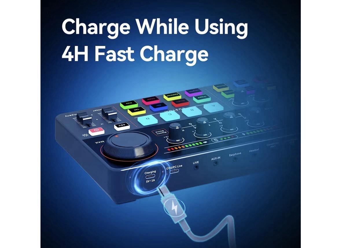 как выглядит Live Streaming Sound Card, Professional Audio Mixer with 48V Power, Bluetooth Dj фото