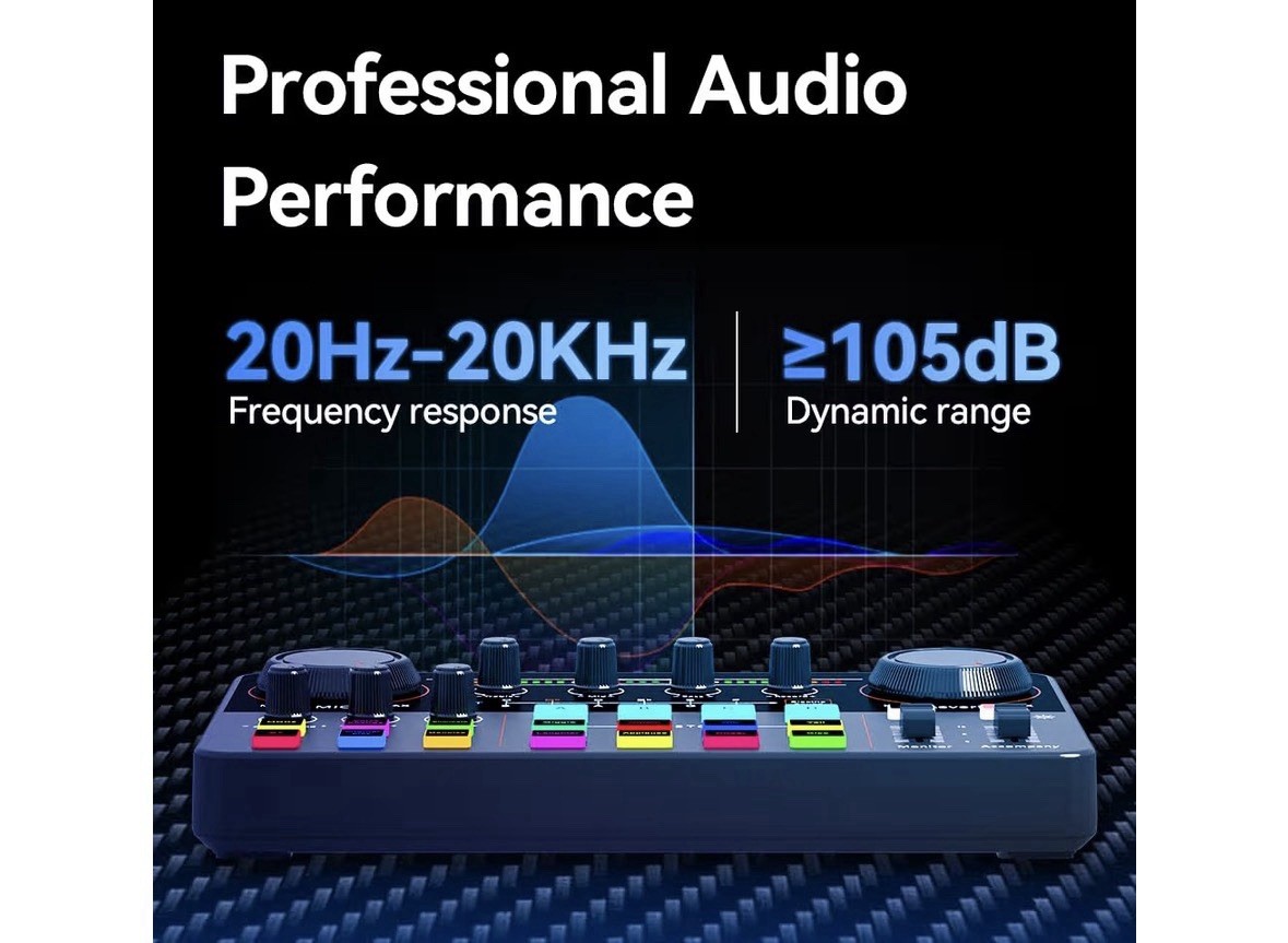 Live Streaming Sound Card, Professional Audio Mixer with 48V Power, Bluetooth Dj