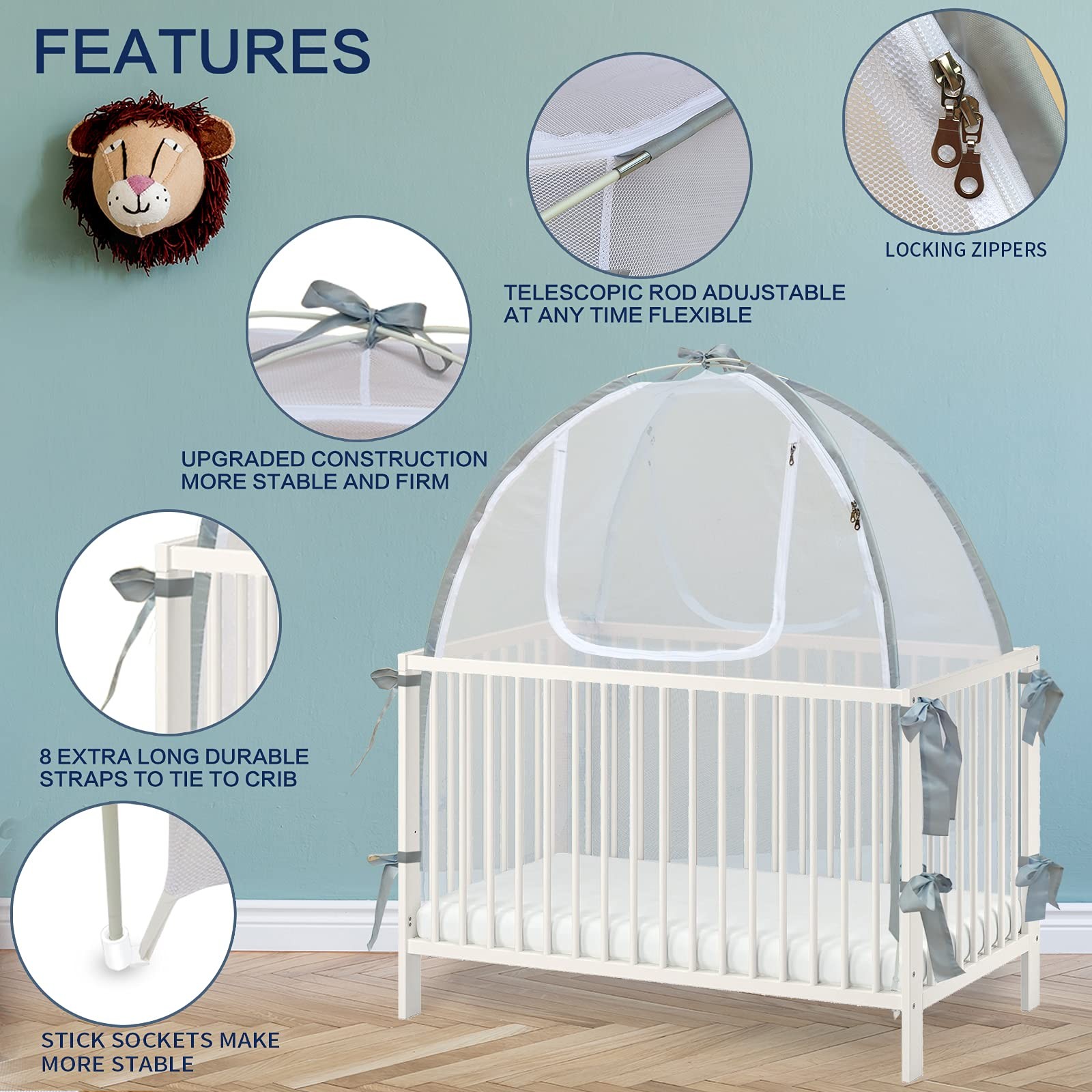 Baby Crib Tent Safety Net, Durable Strong Self-Locking Zippers, Protects from...
