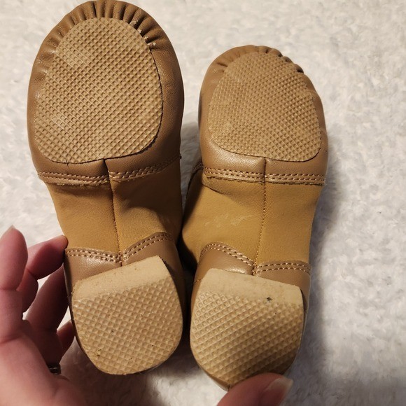 Kids Tan Leather Split Sole Jazz Dance Shoes Slip On Size 10.5