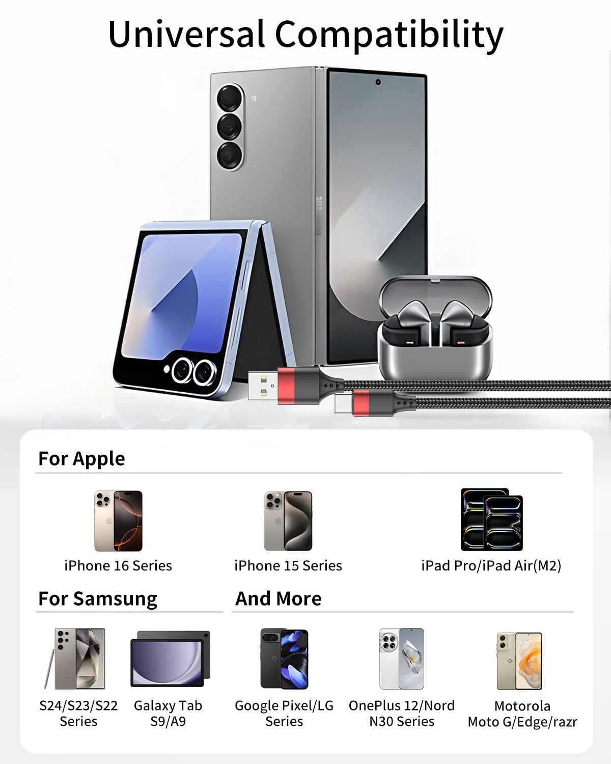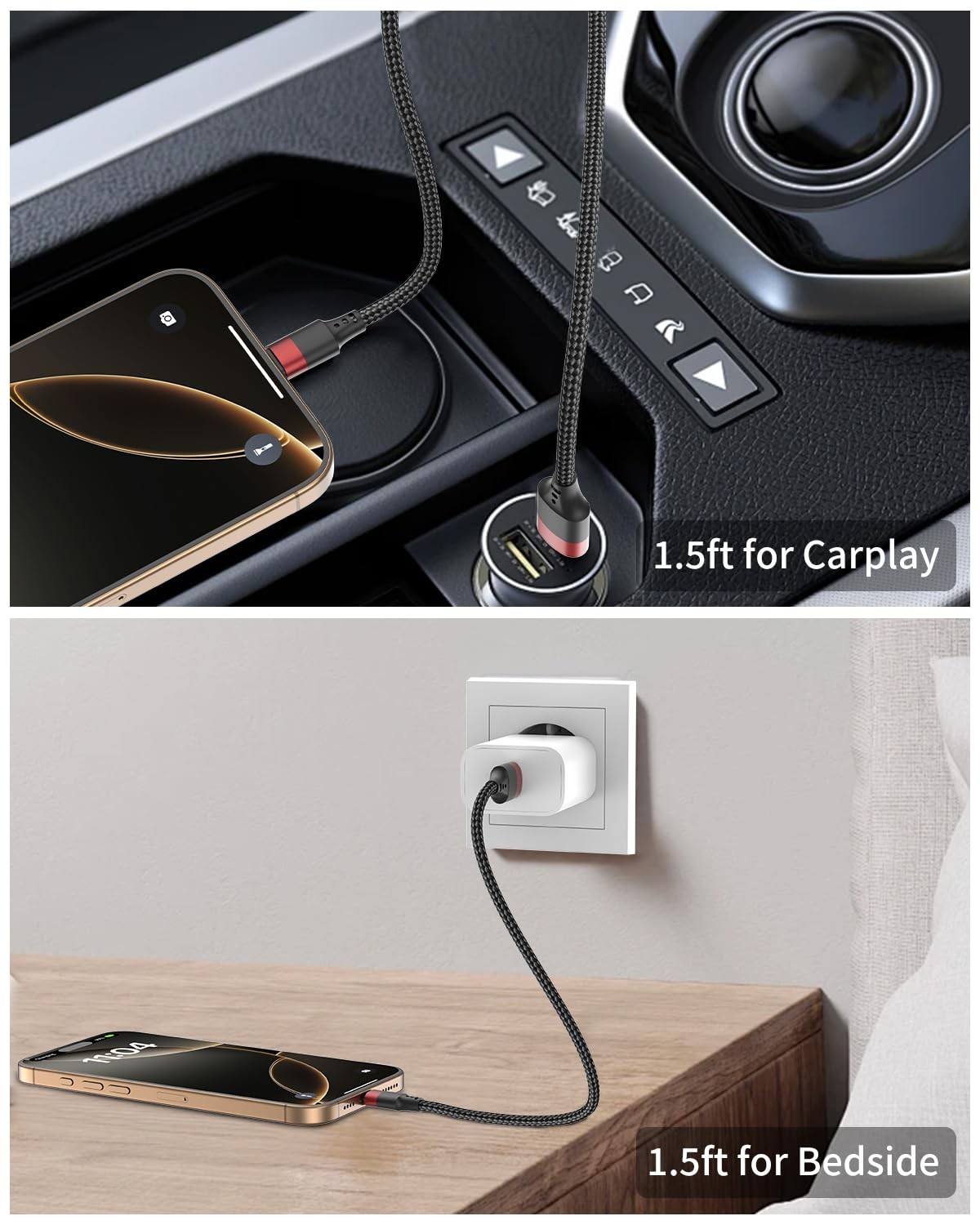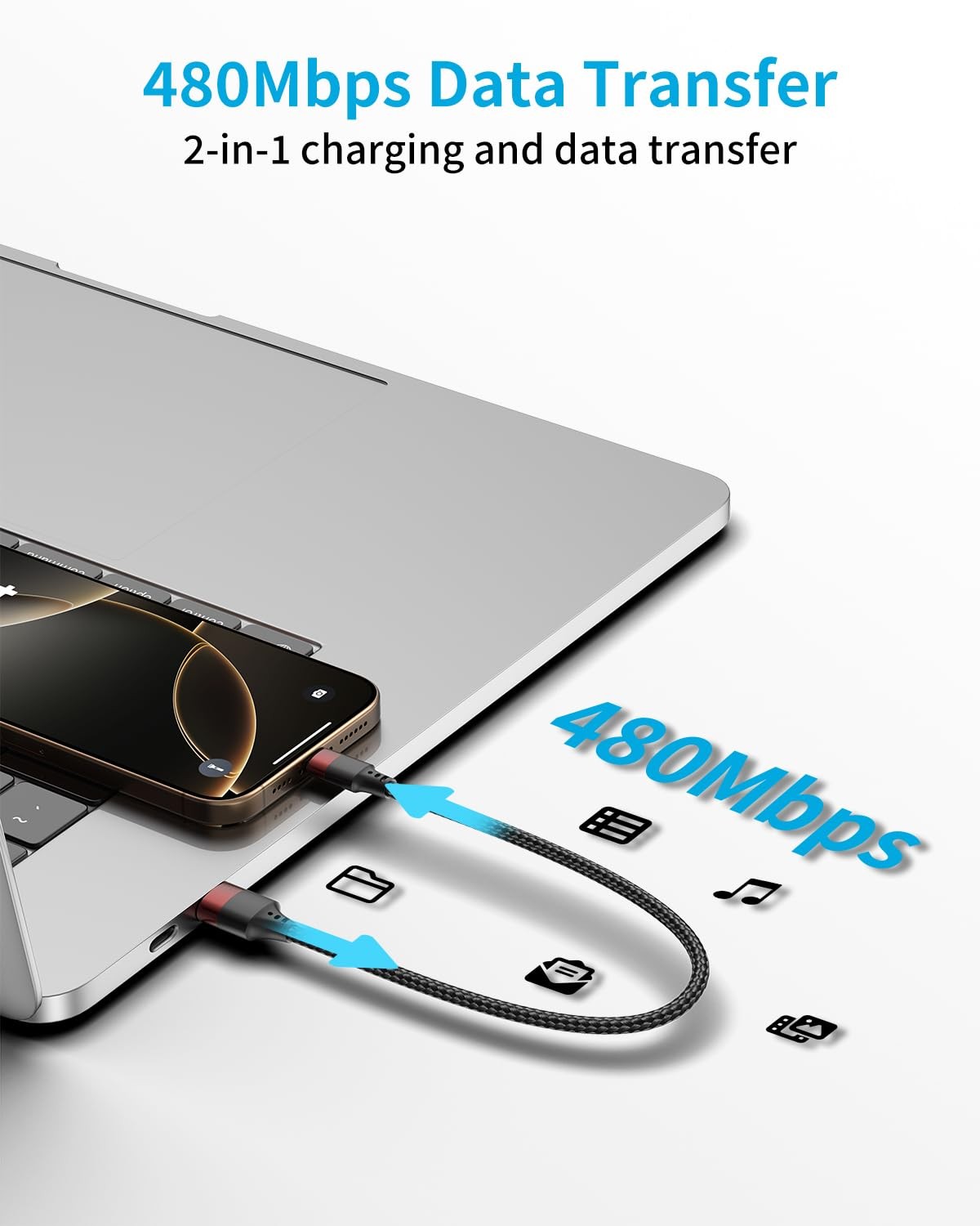 Vienceen 1.5 FT USB C Cable, Short to C Cord 18 inch, 3 1.5ft, Black