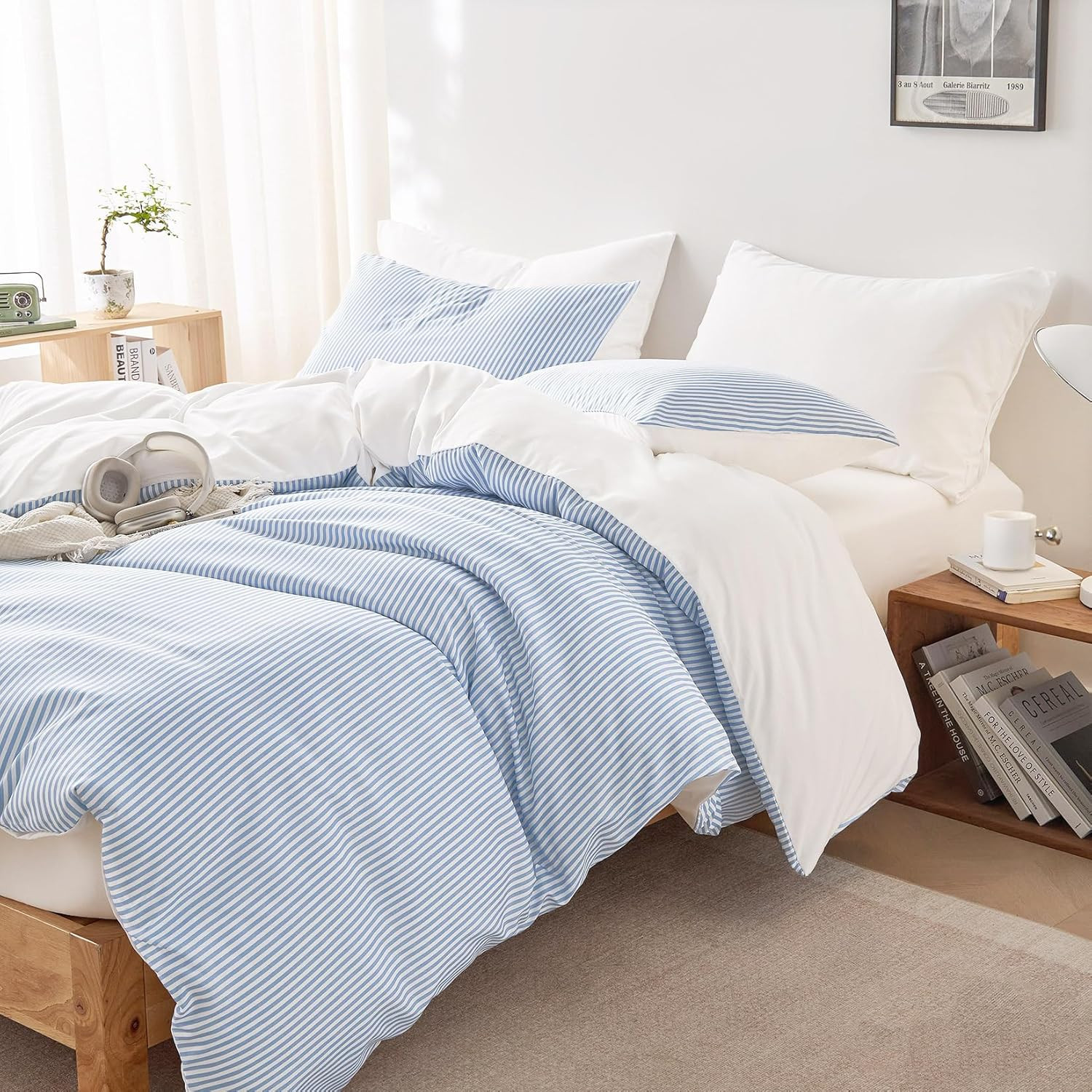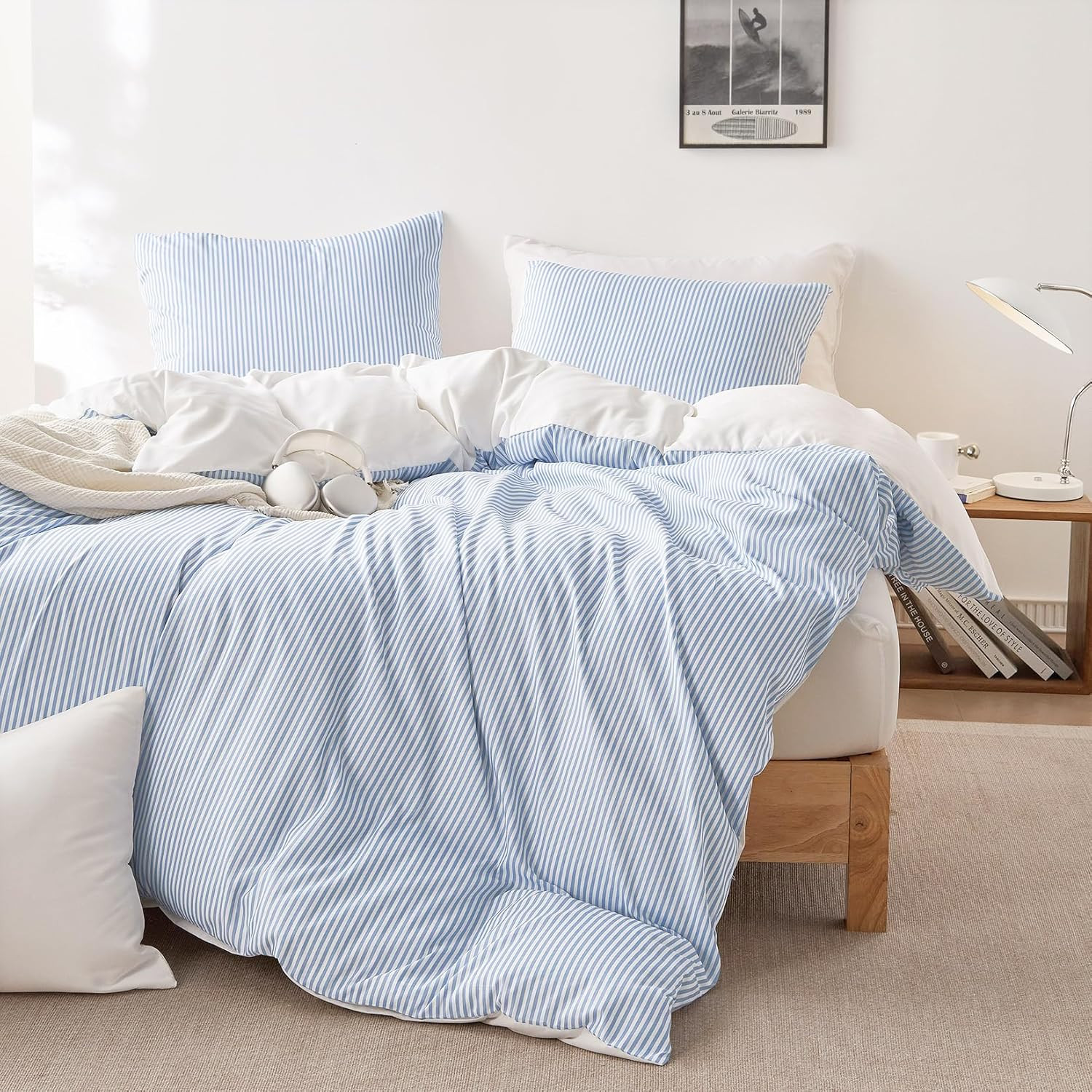 - Striped Comforter Set, Ticking Stripe Vertical Pinstripe Neutral Farmhouse Pat