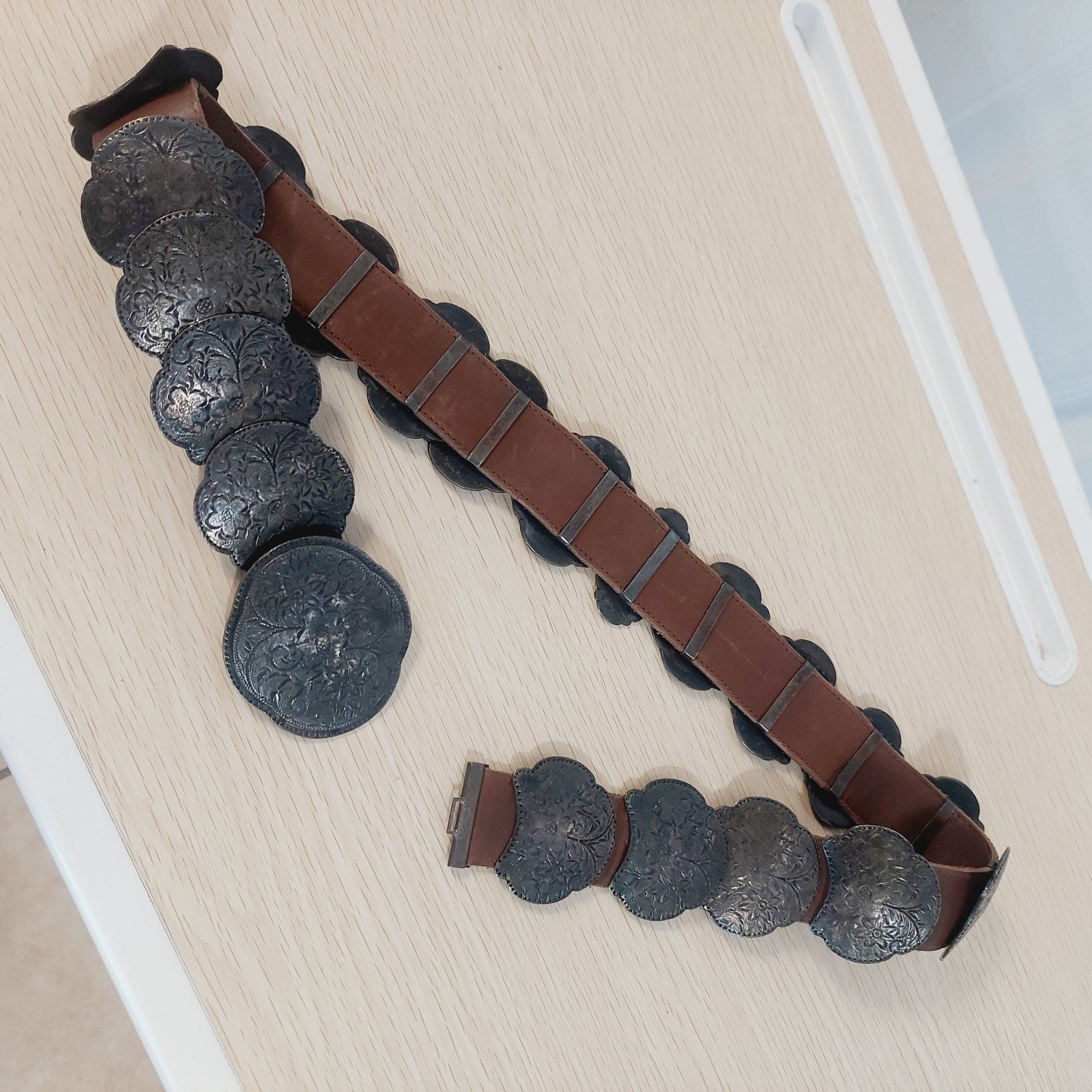 как выглядит Vintage Navajo Heavy Concho Handmade Etched Silver Tone / Leather Belt 34" фото