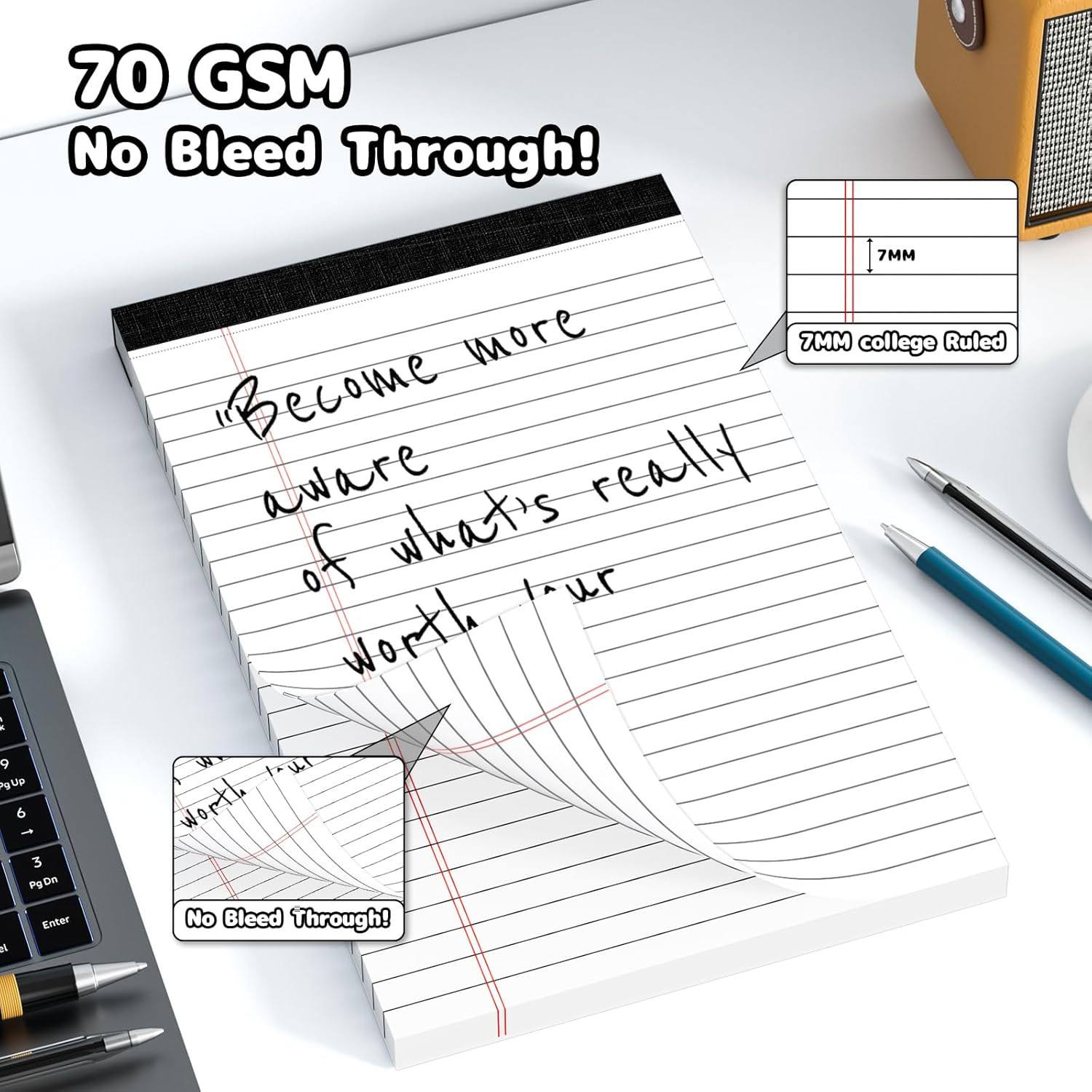 5X8 Legal Pads Writing Pad Note Pads, 5 Pack College Ruled Lined Paper Pad, Whit