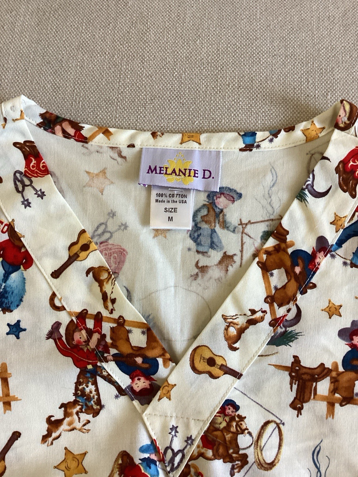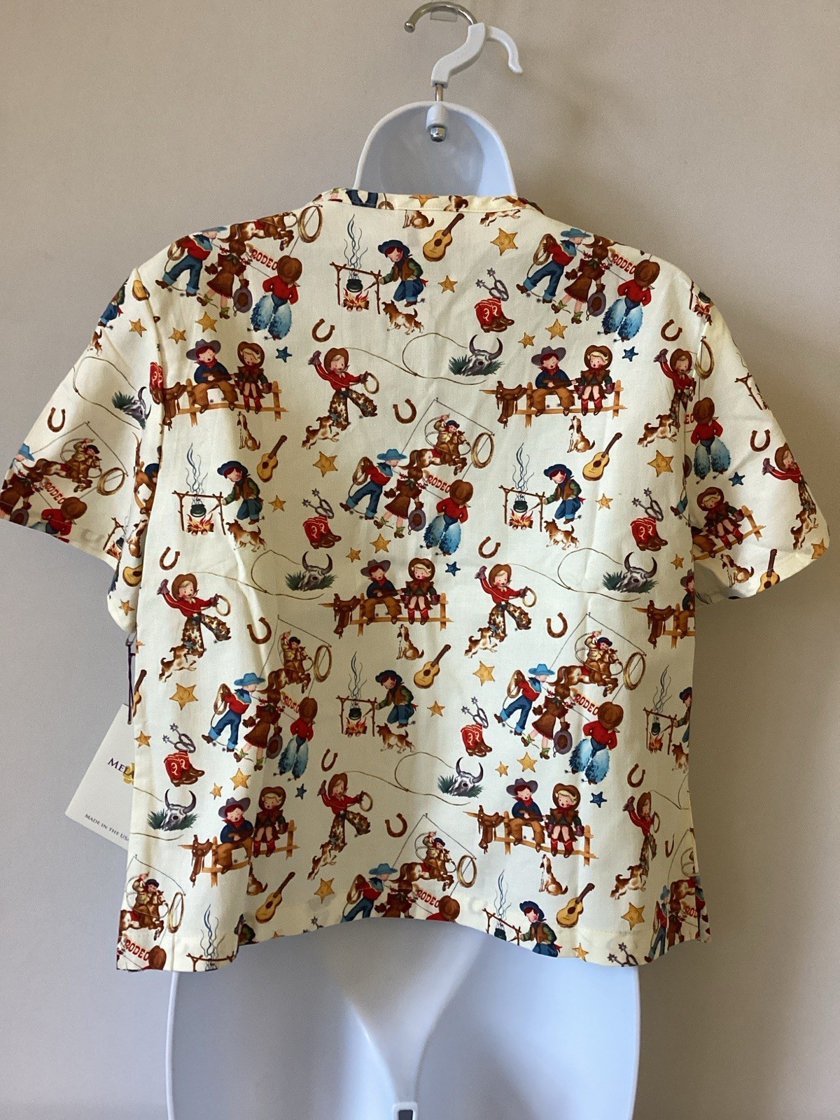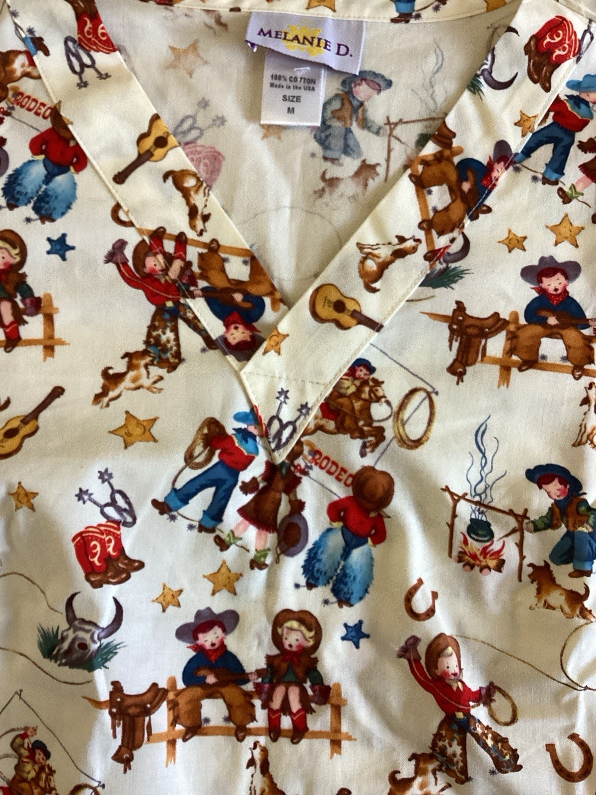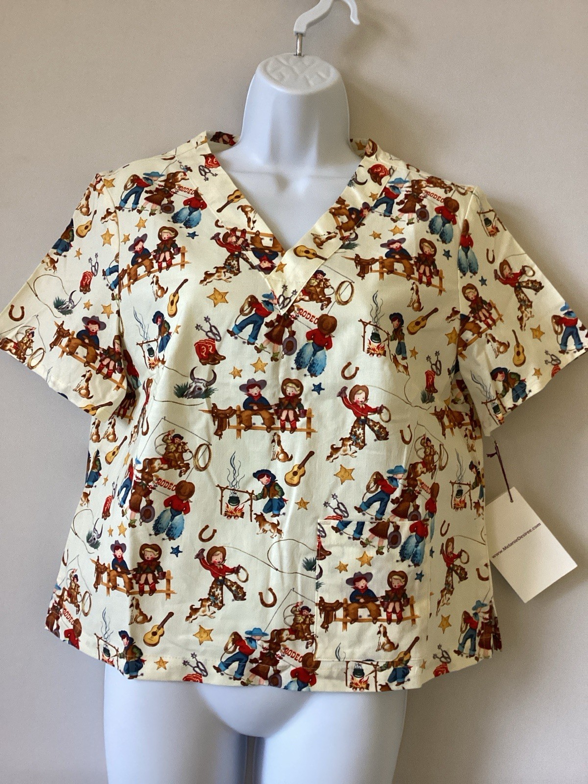 Melanie D Western Scrubs Top Women s Medium Equestrian Retro Western Rodeo