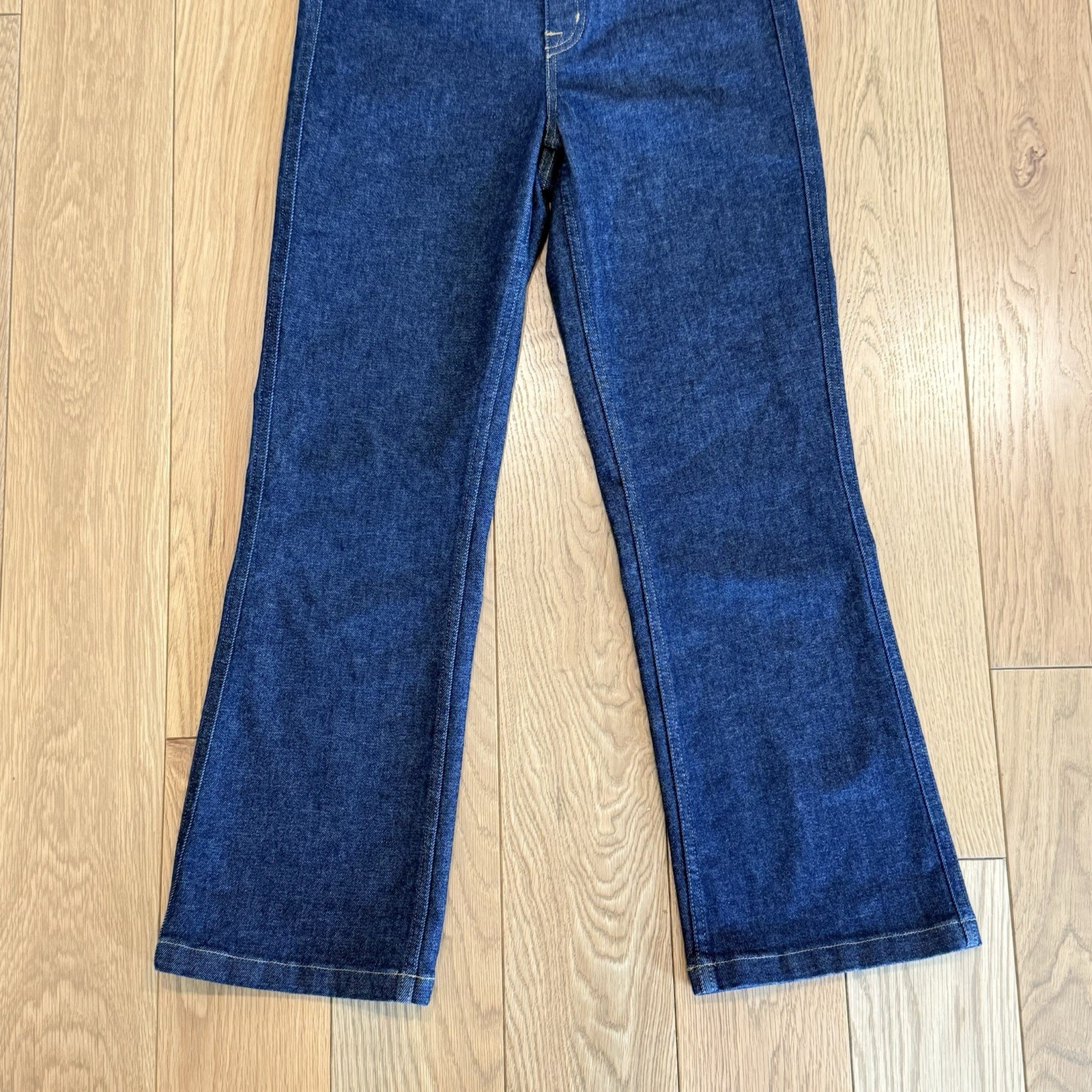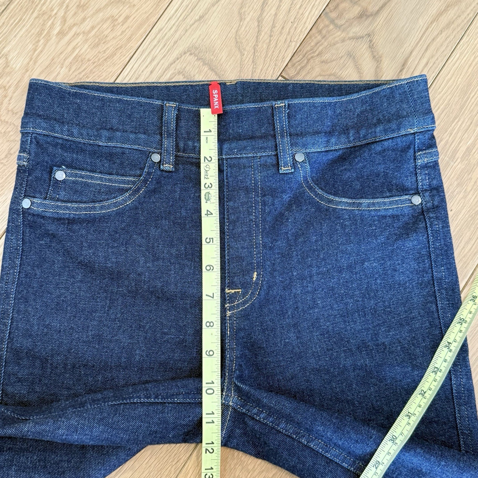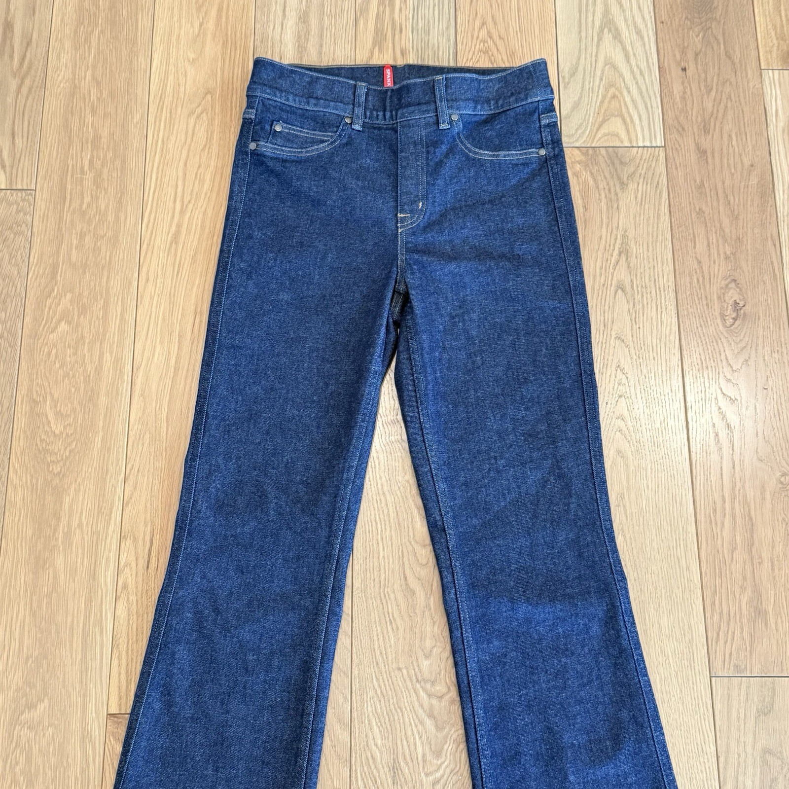 как выглядит SPANX Kick Flare Jeans Medium Raw Indigo Dark Wash Shaping Pull On Denim фото
