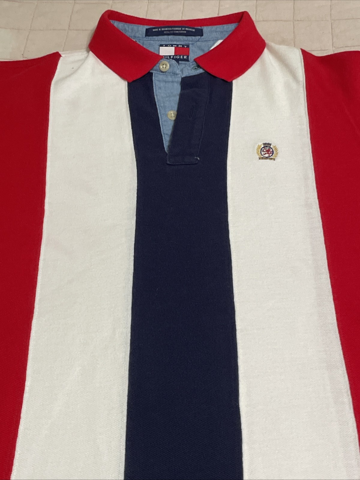 Tommy Hilfiger Size XL Polo Shirt Stripes Red White Blue Y2K 90 s 77806