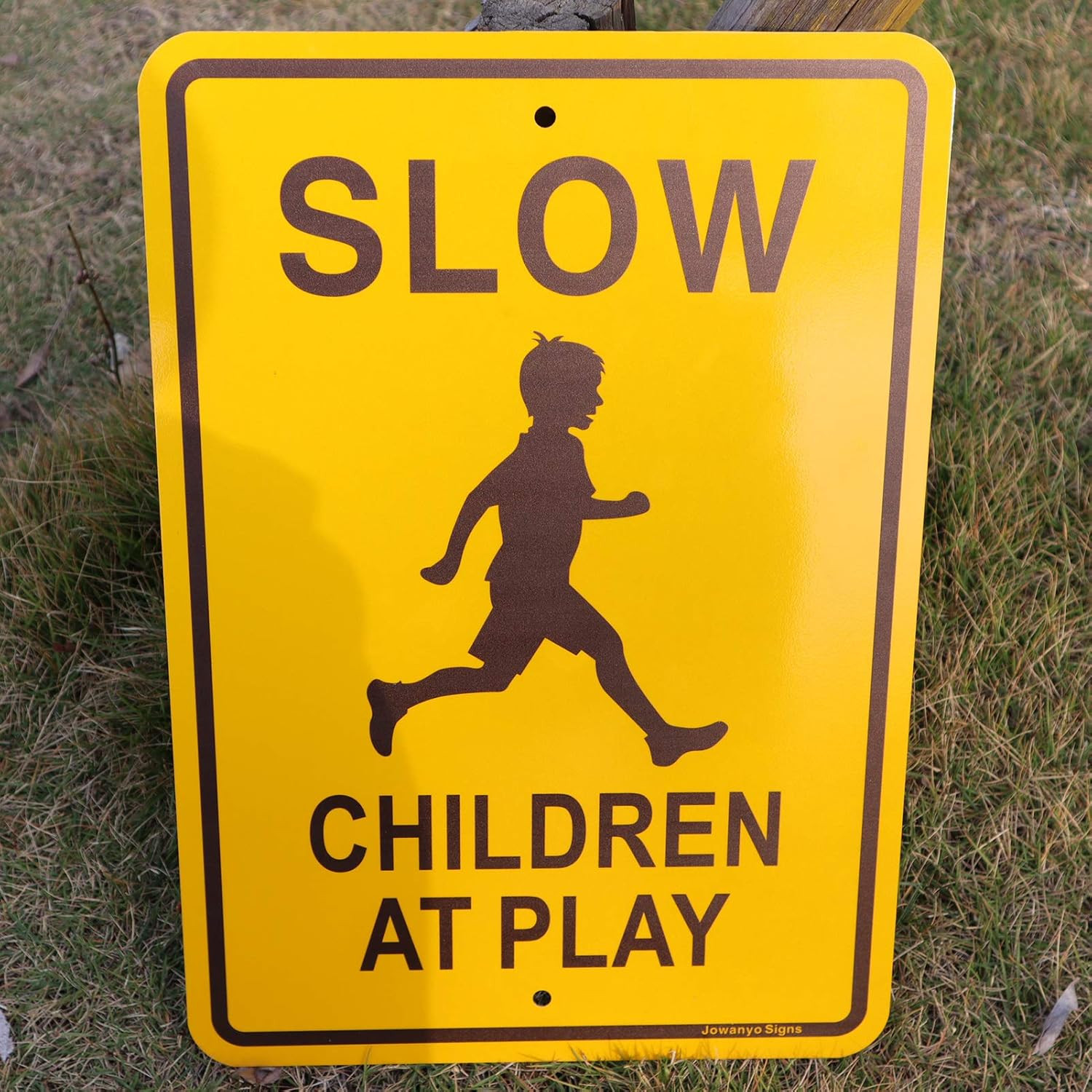 Reflective Slow Down Children at Play Sign - 4 Pack, 17x12 Inches