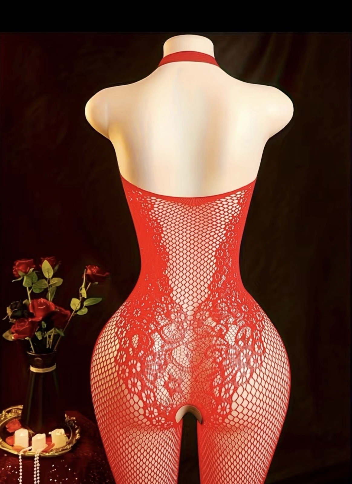 как выглядит Red Queen Fishnet Bodystocking Lingerie Lace Halter Teddy Plus OS фото