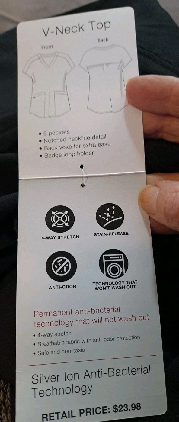 как выглядит Womens 6 Pocket Black Short Sleeved Scrub Top Climate Right Cuddl Duds Med фото