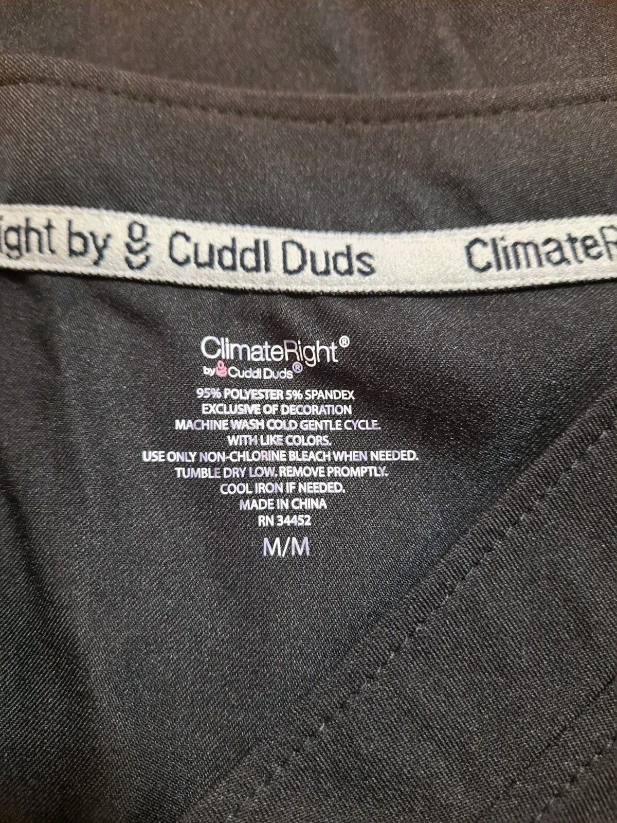 Women's 6 Pocket Black Short Sleeved Scrub Top Climate Right Cuddl Duds Med