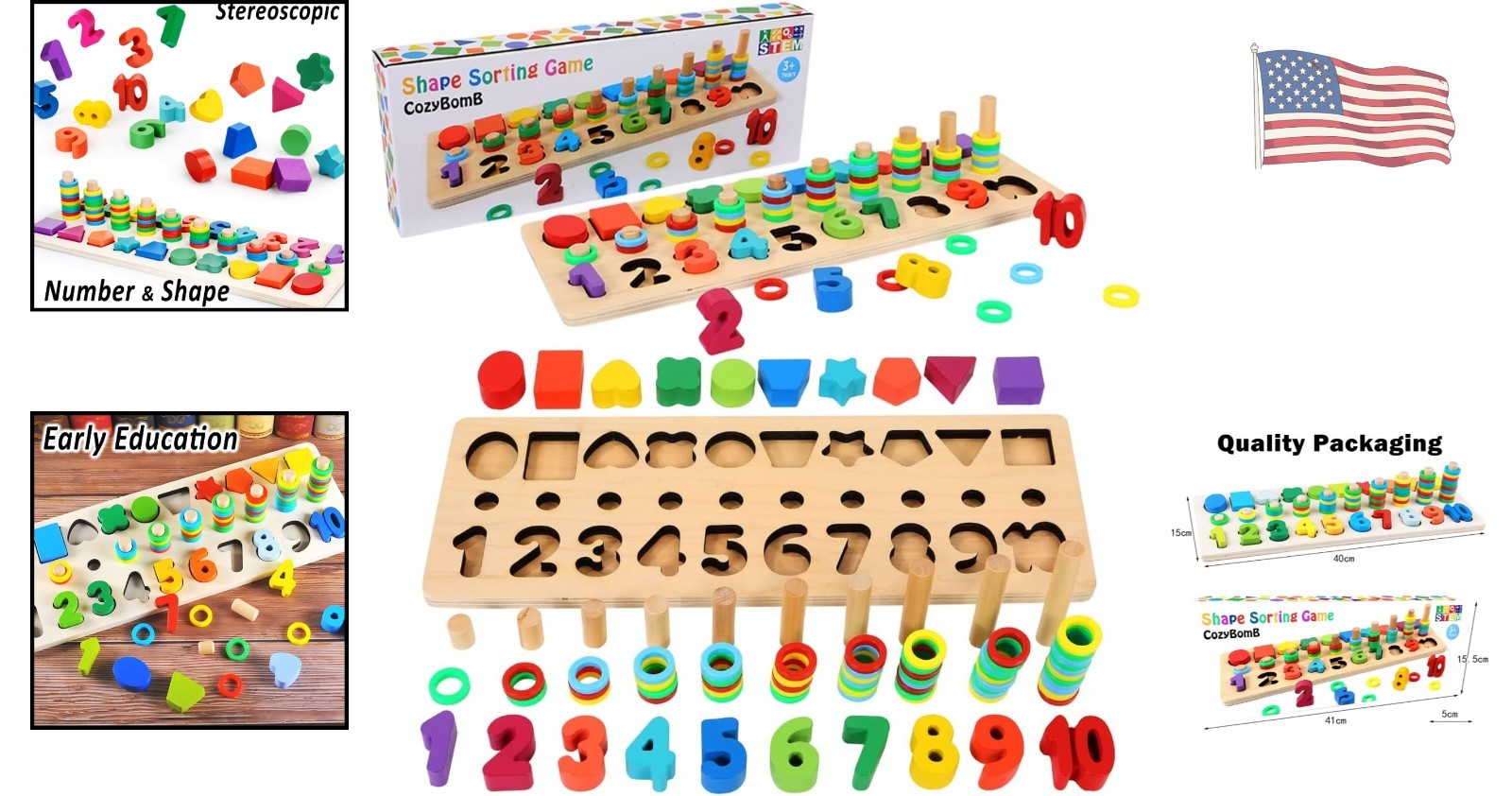 как выглядит Wooden Montessori Educational Toy Set: Puzzles, Stackers, and Early Learning Fun фото