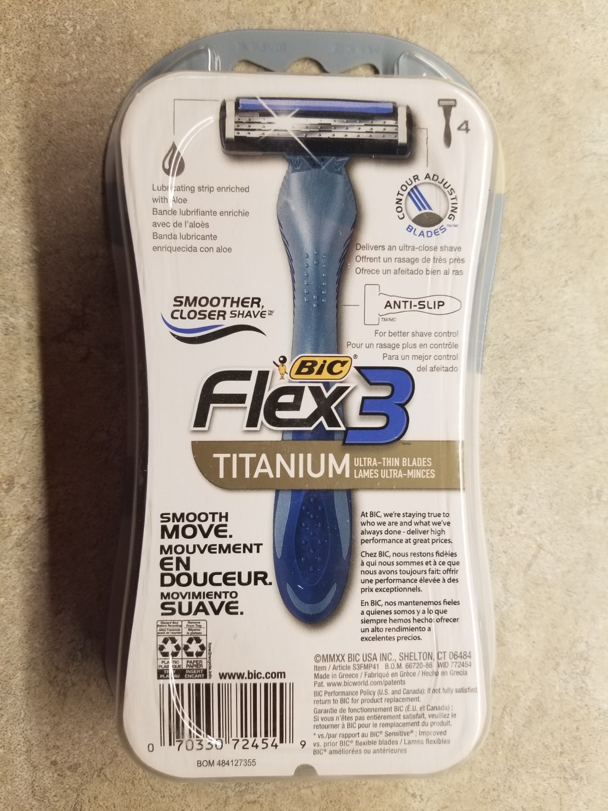 3 Pkgs BIC Flex 3 Titanium Flexible 3-Blade Disposable Men's Razors - 4 ea Pkg
