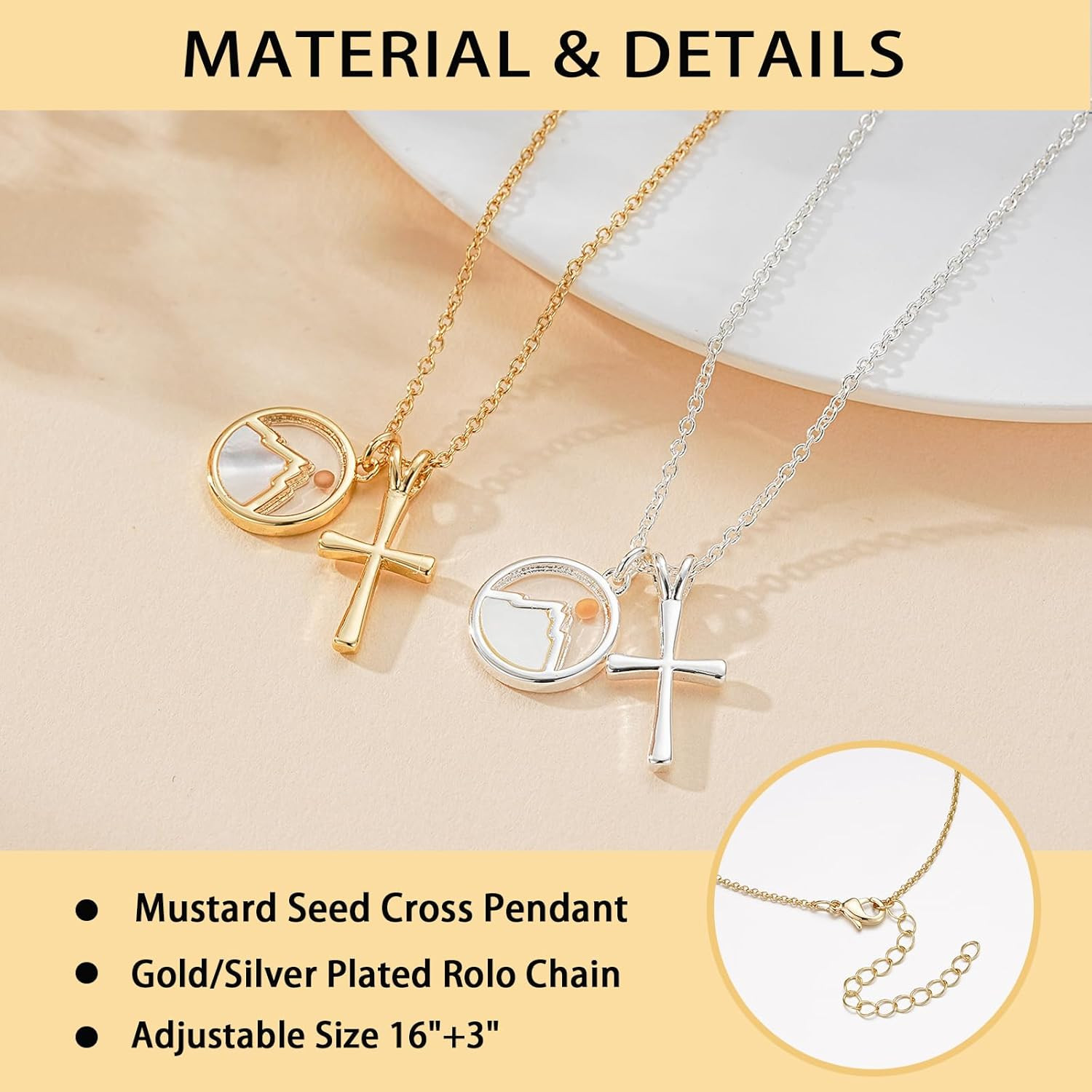 Mustard Seed Cross Necklace for Teen Girls Women Moving Mountains Faith Easter C