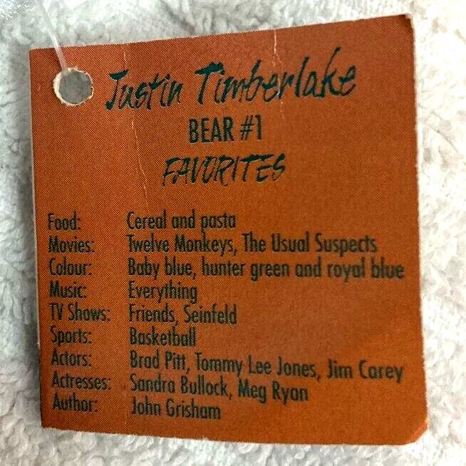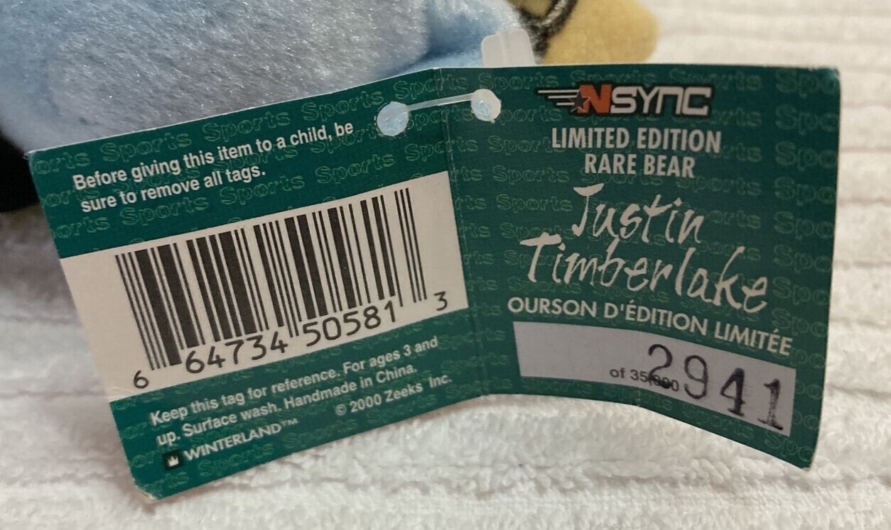 Justin Timberlake 10 Limited Edition Teddy Bear With Numbered Tag and NSYNC CD