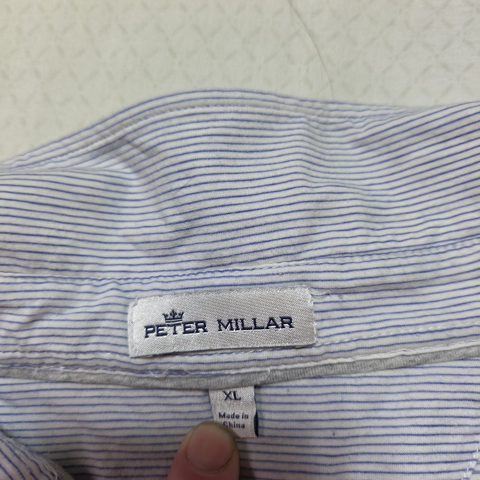 Peter Millar Polo Shirt Men's XL Blue White Summer Comfort Golf Performance Logo