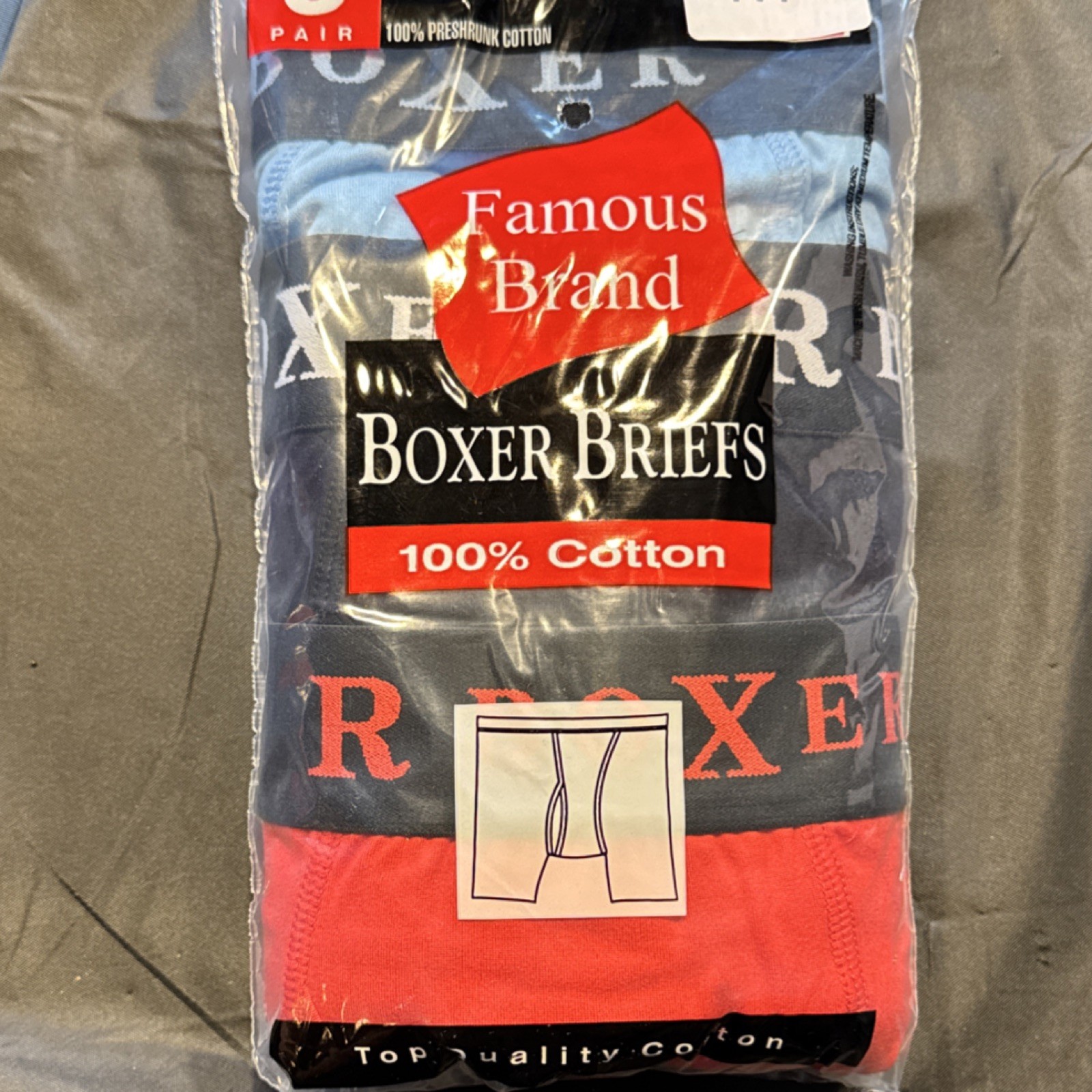 Famous Brand Men's Boxer Briefs 3 Pack Cotton Jersey Multicolor Size M Preshrunk