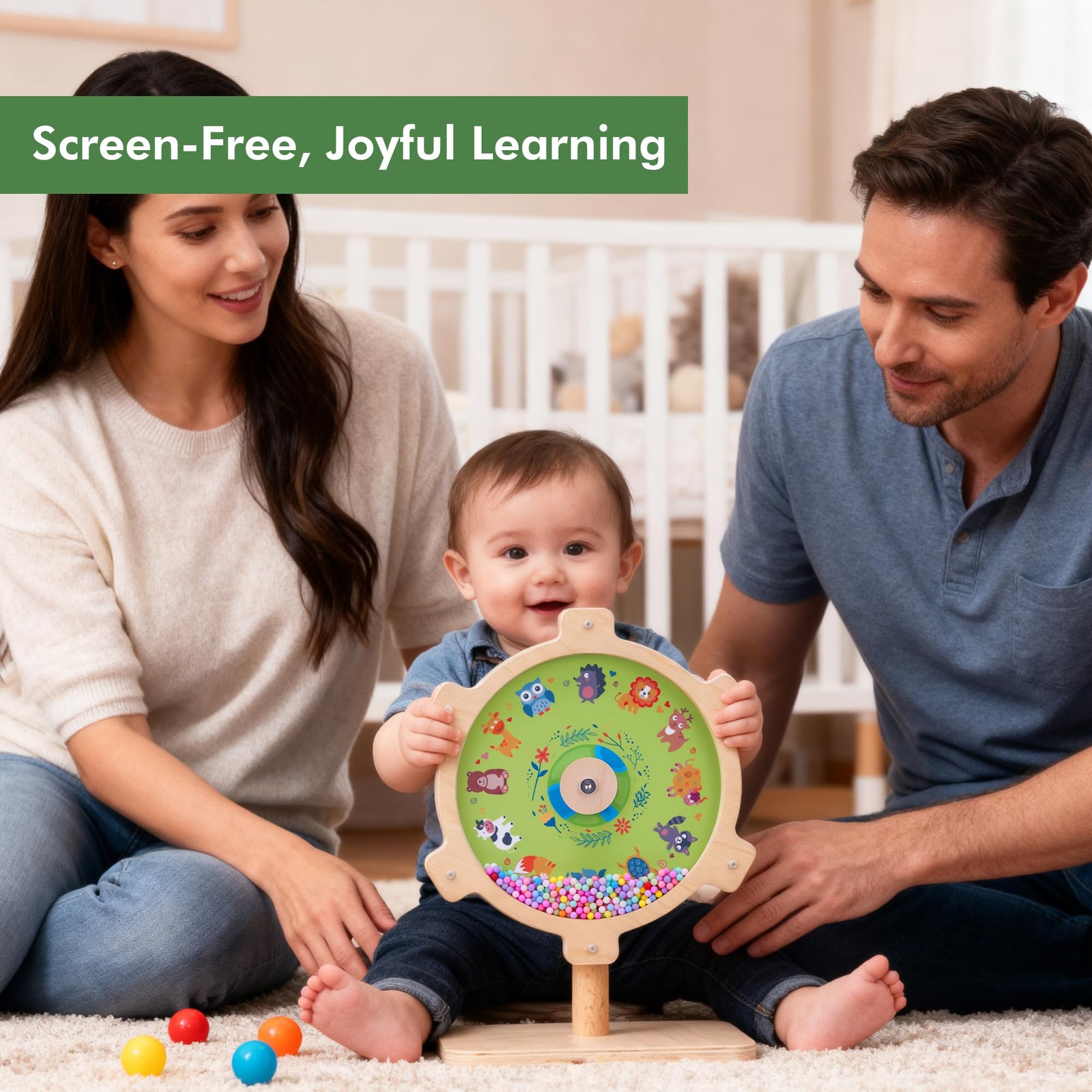 Spinning Activity Drum Toy with Sound, Montessori Wooden Sensory Toy for Babi...