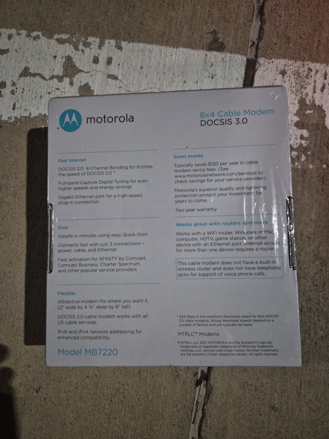 NEW SEALED Motorola MB7220-10 8x4 343Mbps DOCSIS 3.0 Cable Modem