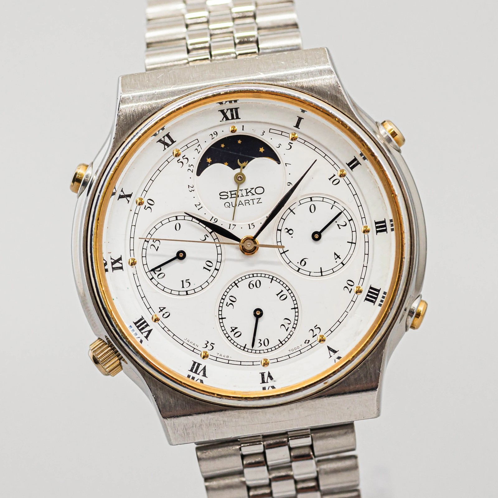 как выглядит Working Need Repair SEIKO 7A48-7000 Moon Phase Quartz Chronograph 38mm Men