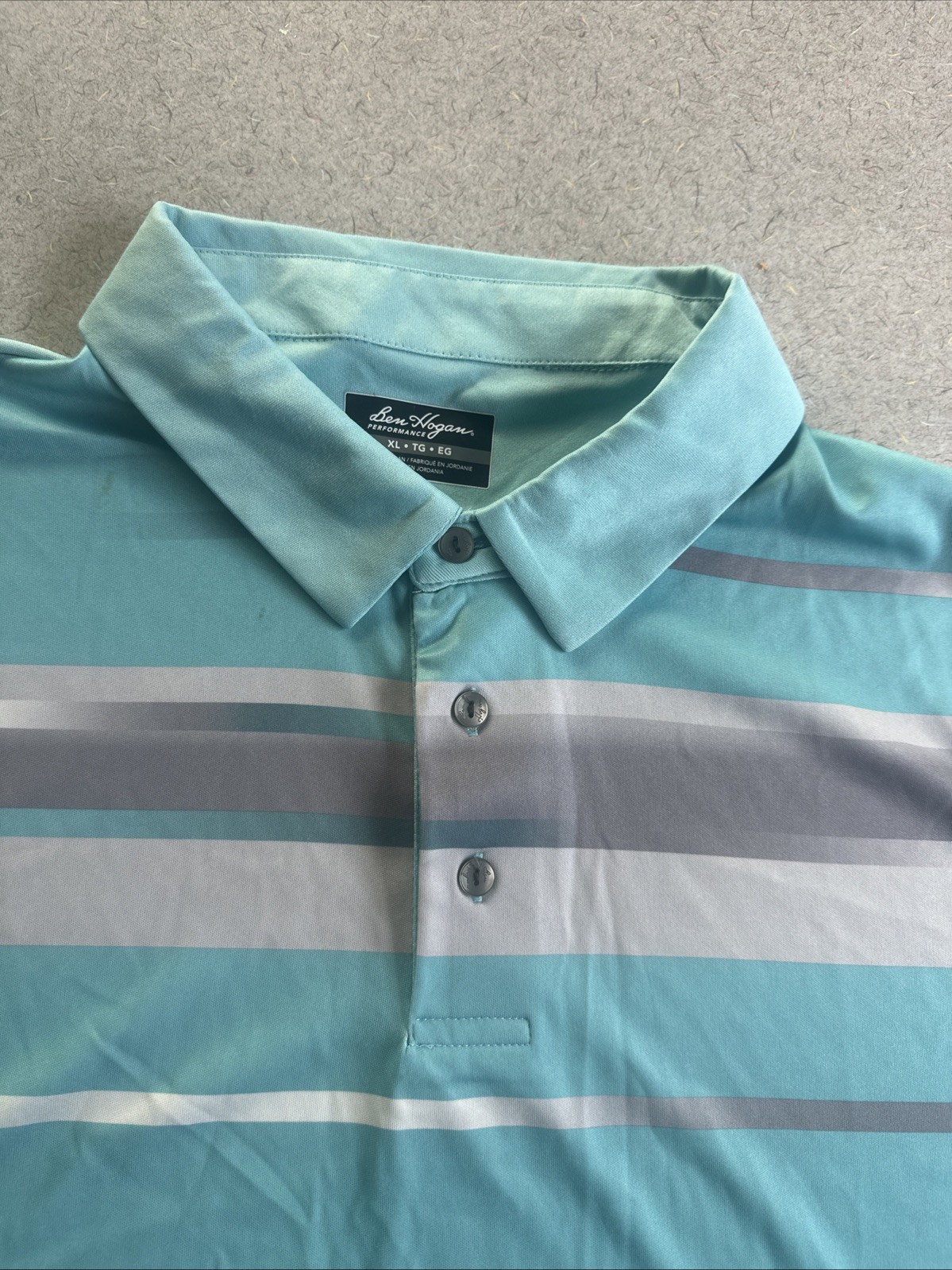 как выглядит NWT Ben Hogan Polo Shirt Mens Aqua Striped Performance Short Sleeve Golf фото