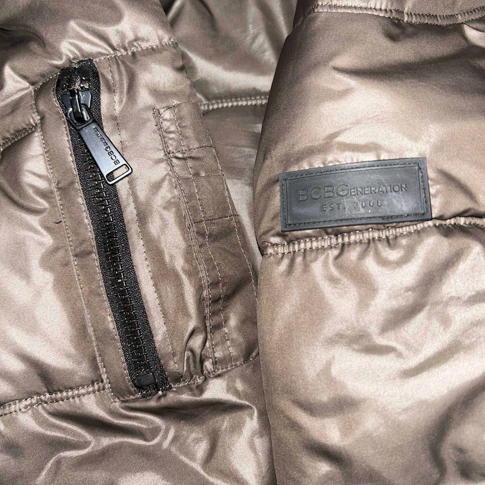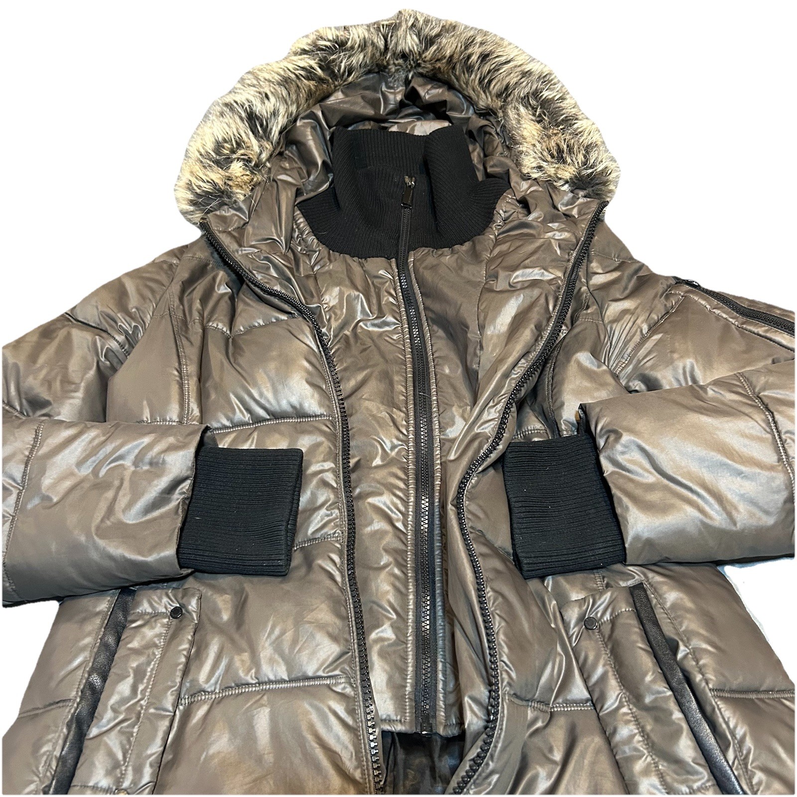 Y2K BCBG Generation Brown Parka Puffer Coat Removable Faux Fur Women s Medium
