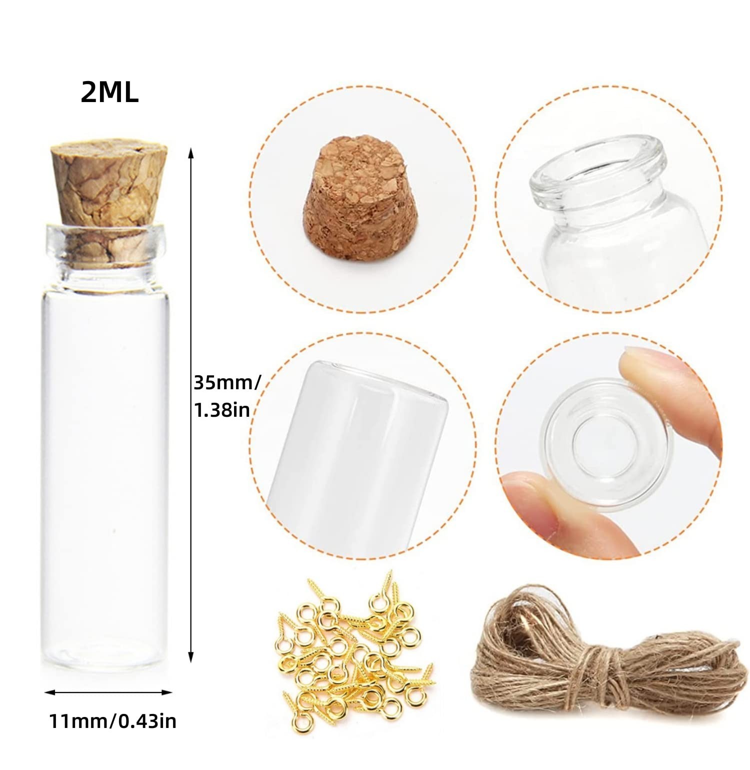 100 Pcs 2ml Mini Glass Bottles with Cork Stoppers, 20 Meters Twines, Tiny Jar...