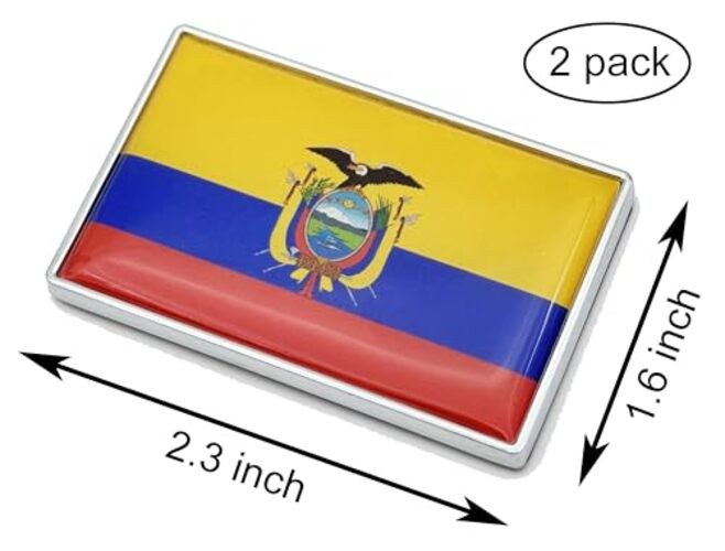 как выглядит 2 Pcs 3D Ecuador Ecuadorians Flag Metal Car Stickers Chrome Decals,2.3 x 1.6 фото